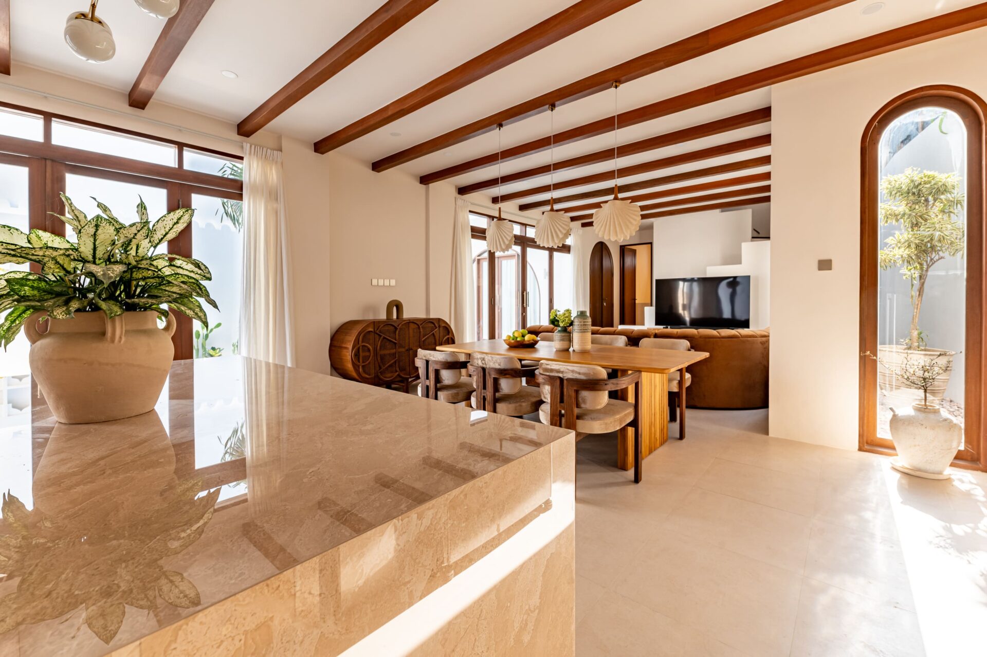 The culinary scene around the property is nothing short of delightful. Within a 10-minute reach, you can indulge in the offerings of charming cafes and restaurants like Nook, Monsieur Spoon, Leon, Bistrot and Volken Coffee. These establishments not only provide mouthwatering cuisine but also contribute to the vibrant social fabric of Umalas, creating a sense of community among residents. For those yearning for the sun-kissed shores, Batu Belig Beach is just a 10-minute drive away. This seamless blend of proximity and accessibility ensures that you can enjoy the best of both worlds – the serenity of your Mediterranean-inspired abode and the lively energy of Bali’s famed beaches.