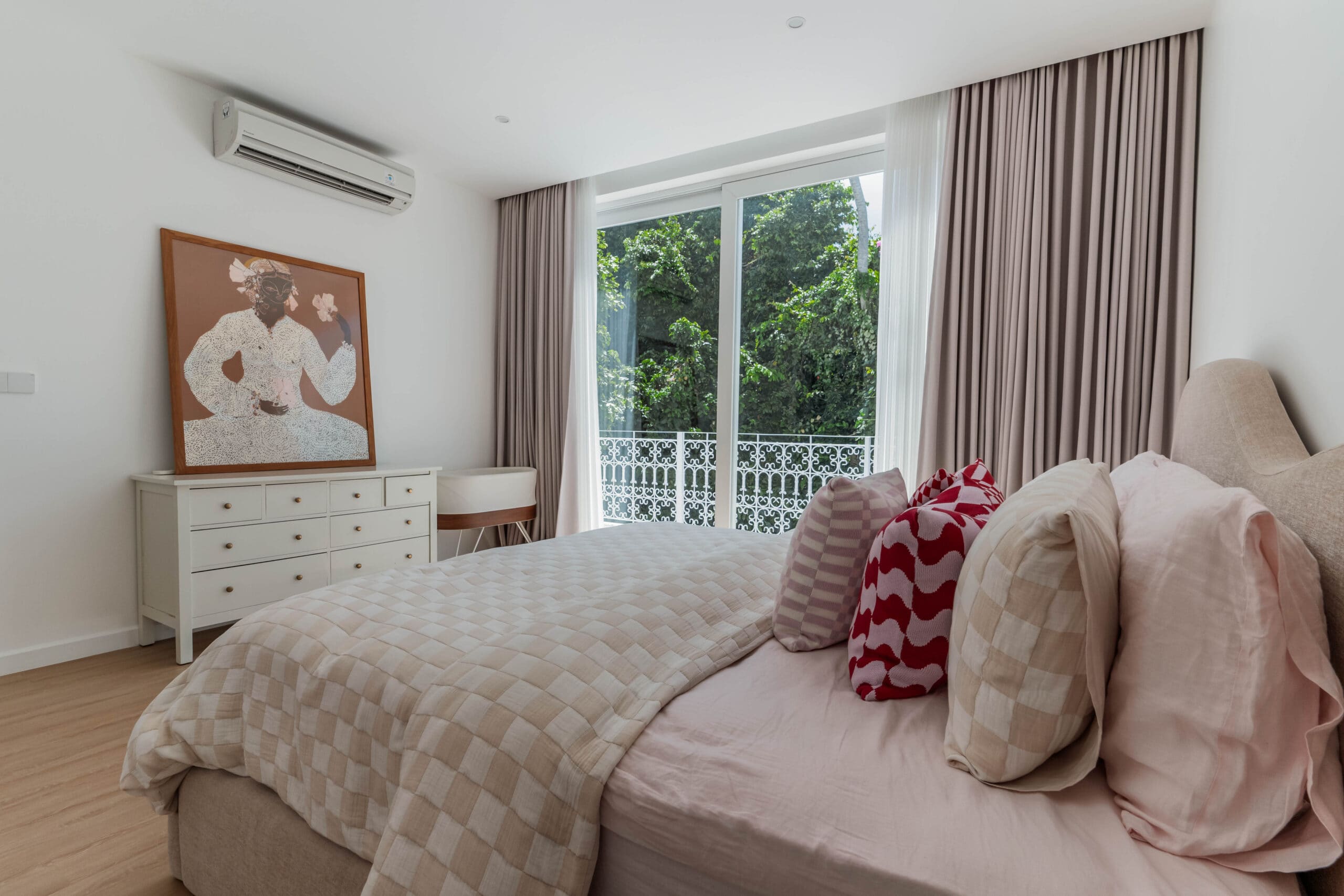 Elegance and tranquility intertwine seamlessly within the villa’s confines. Its sophisticated minimalist design is elevated by subtle Middle-South accents adorning the railings, offering a unique touch of charm. Inside, three meticulously appointed bedrooms await, each boasting ensuite bathrooms, graceful walk-in closets, and serene balconies – a haven for relaxation and rejuvenation amidst the lush surroundings.