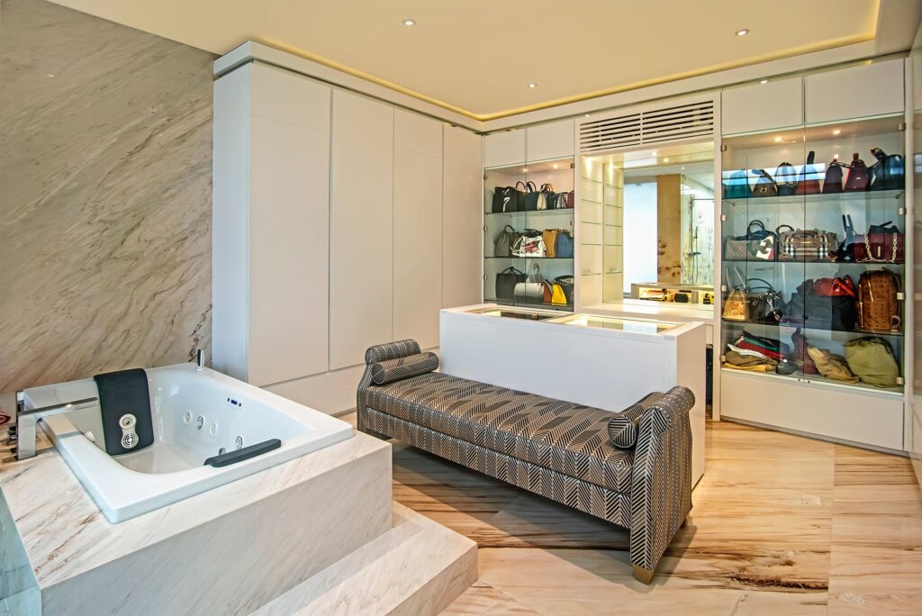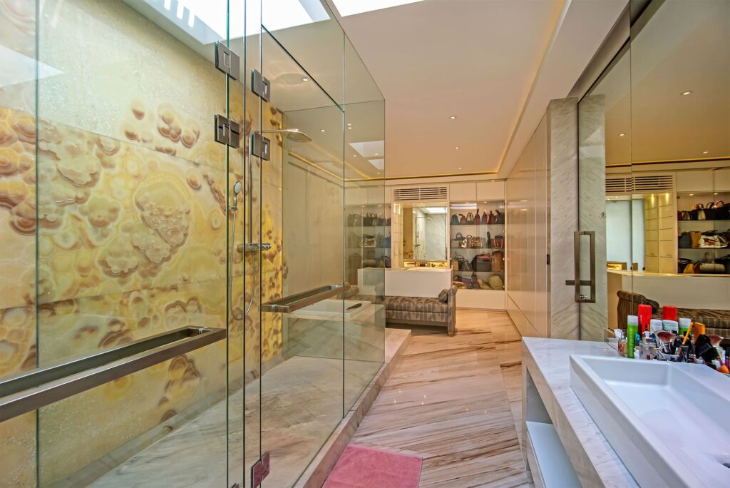 Taking a little sneak peek inside, the property offers 6 ensuite bedrooms spread throughout the three storeys, complemented with a convenient elevator with 10 people capacity to access the second and third floors. The sleeping area comprises one master bedroom with two bathrooms in their personal designs, two ensuite bedrooms for children, and another two ensuite guest bedrooms. Spot on its best communal areas to hang around with your loved ones where you could enjoy the breathtaking lure of nature while relaxing on the sunbeds from its integrated balcony. The property also comes with wet and dry modern kitchens, equipped with dishwasher, oven and big fridges, while as well providing other features of the lounge room, spacious storages, smoking room, 3 office rooms, 2 bedrooms for staff headquarter inside the property.