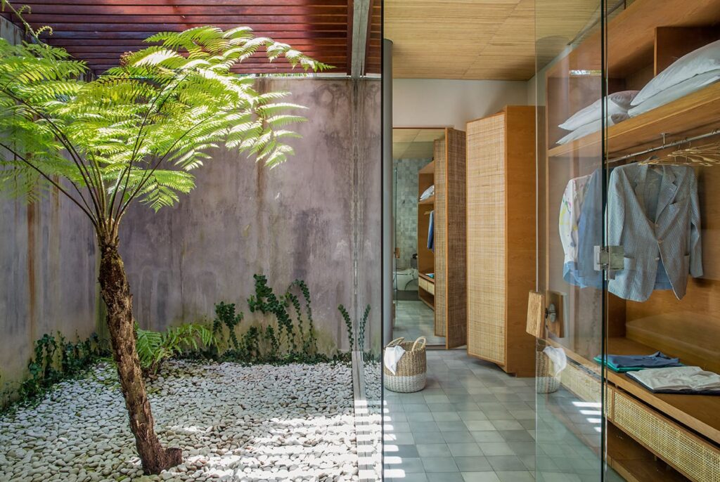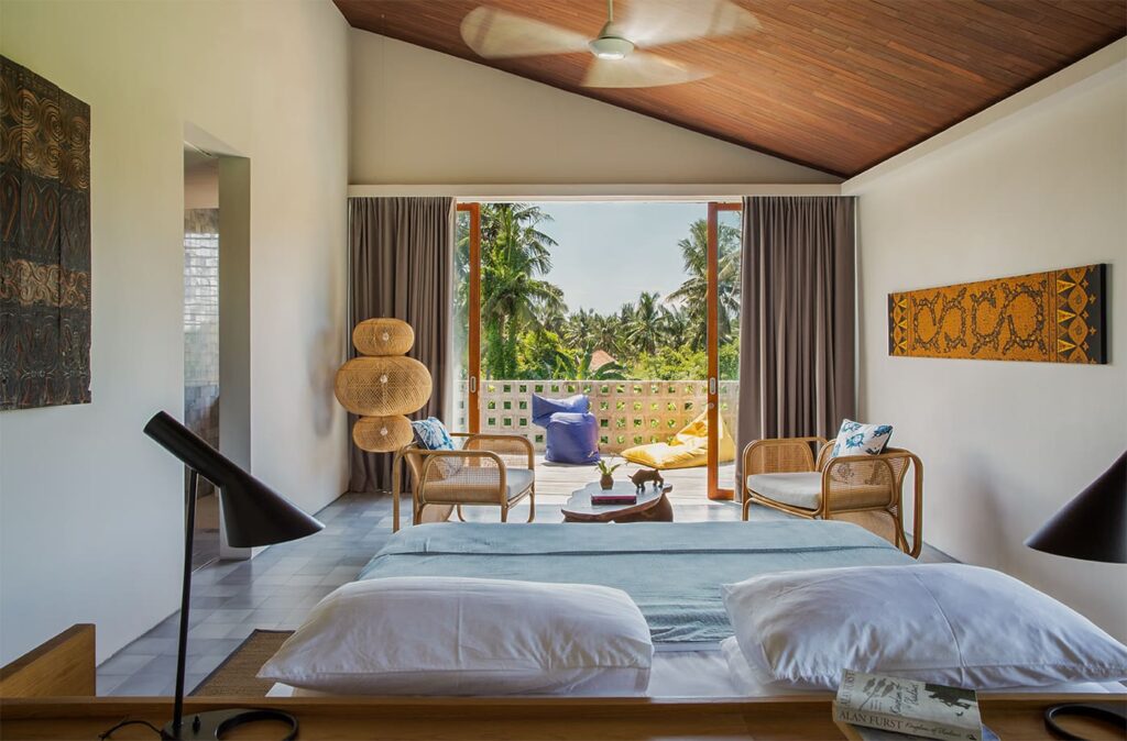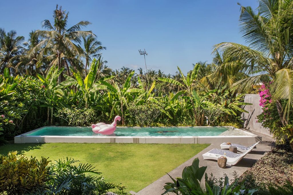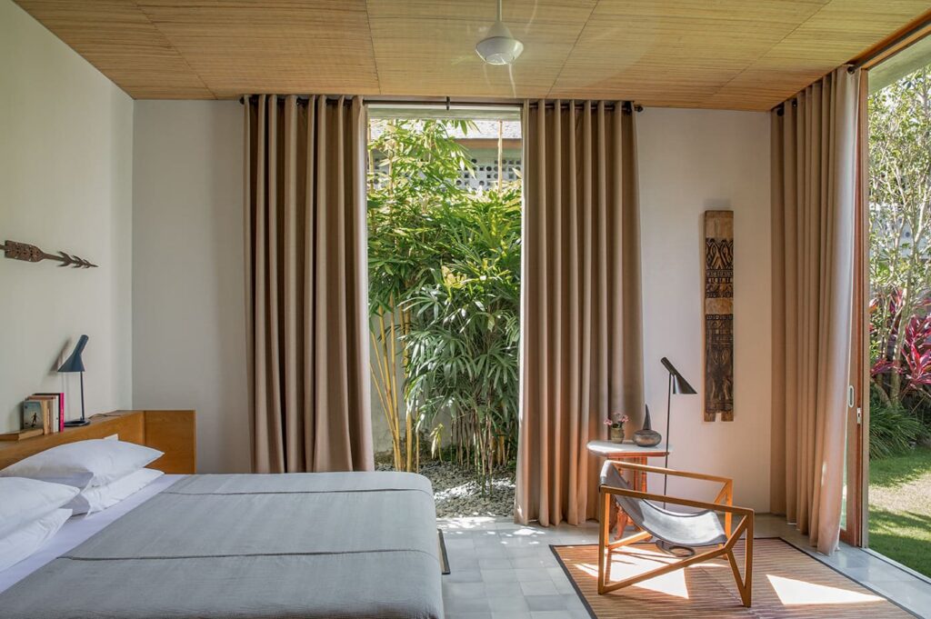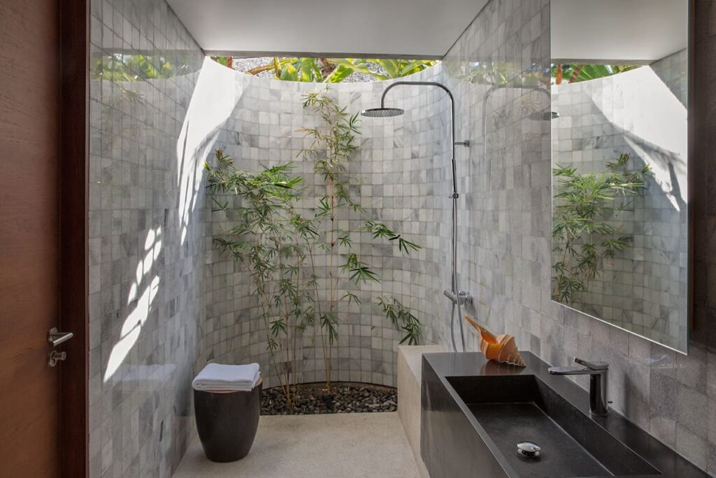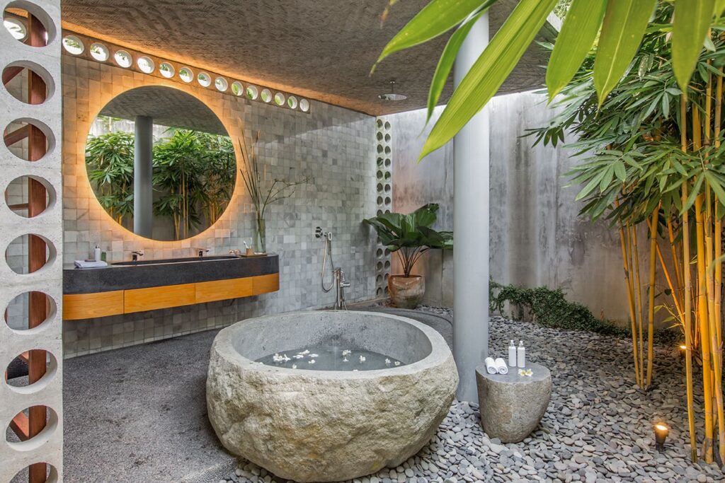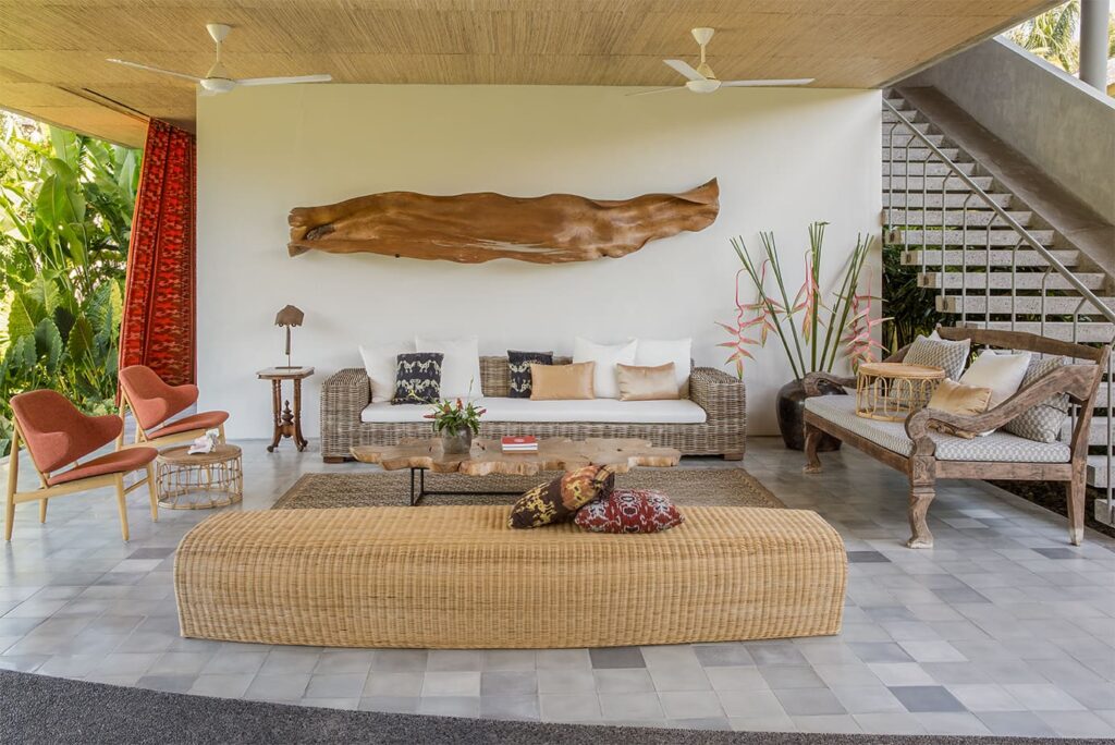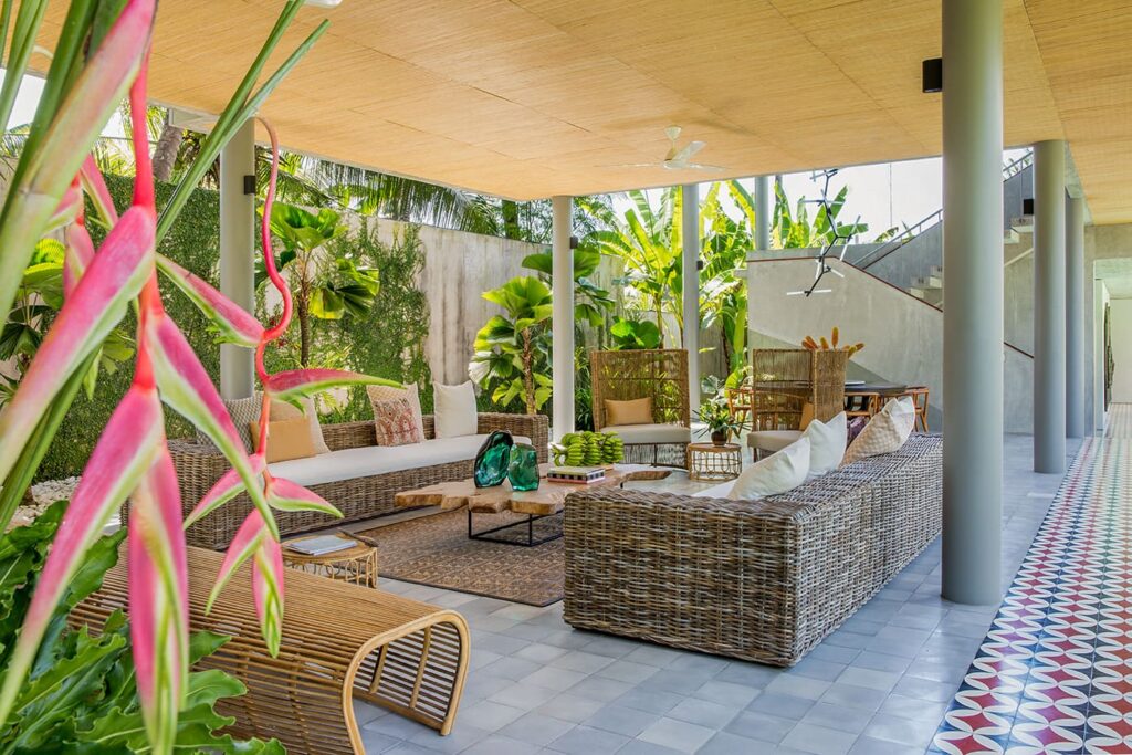 The architectural brilliance behind this property comes from a highly skilled Singaporean architect, whose work has been featured in AD magazine. Each house within the development has been thoughtfully designed to cater to tropical living, ensuring comfort and relaxation. Each building boasts an open-plan living area where you can freely enjoy Bali’s weather, while the bedrooms are designed as self-contained suites, offering maximum privacy. Inspired by the charm of traditional Balinese village clusters, the houses feature elements drawn from the local architecture. Notably, the undulating pitch roofs utilize SIRAP or ironwood shingles, and the incorporation of screen walls promotes natural ventilation, while overhangs provide welcome shade. The material palette used encompasses locally sourced elements such as stone, marble, colored cement tiles, and timber.