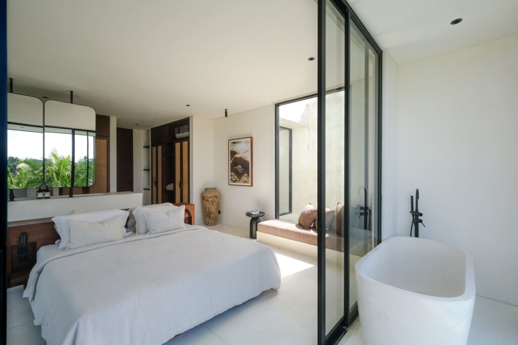 This off-plan, modern villa is positioned to be your tranquil haven. Achieve a balanced lifestyle with various activities, such as savoring meals at nearby places like The Lodge, just a 12-minute bike ride away, and engaging in healthy pursuits like jogging on the Beraban Jogging Track. Welcome to a villa where stepping inside instantly evokes a homey vibe, adorned with eco-friendly materials. This charming abode boasts three bedrooms, each featuring an ensuite bathroom for the utmost privacy. The master bedroom holds a unique allure, featuring a bathtub and a captivating view of the nearby rice paddies. Seamlessly blends an enclosed living area with an open-plan kitchen pantry, fully equipped for your culinary delights. In the mornings, it is highly recommended to slide open the glass rolling door and relish the invigorating fresh air. Step outside, a delightful pool beckons, offering a perfect retreat to unwind. This villa is not just a residence; it’s a sanctuary where comfort meets the allure of nature. Parking areas for 1 car and 2 bikes are allowed.