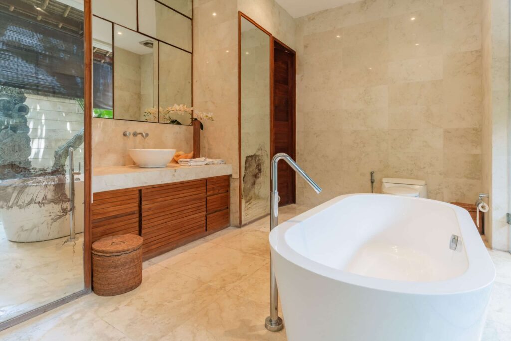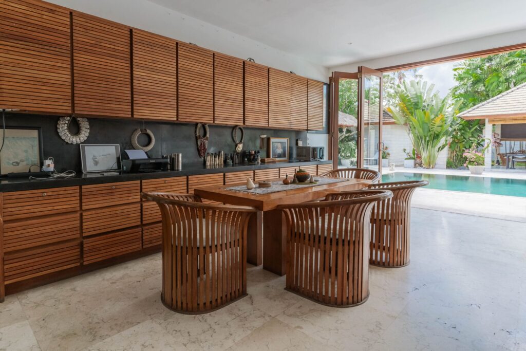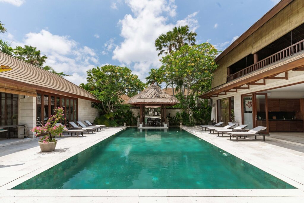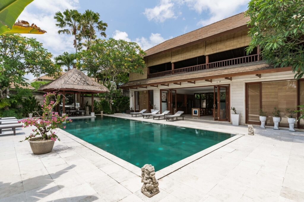 This Villa nestled in a private gated complex between Seminyak and Canggu, this stunning villa offers a peaceful oasis just a five-minute walk from Batu Belig Beach. Designed by renowned architect Popo Danas, it blends traditional Balinese style with modern luxury, making it ideal for families or rental opportunities for up to three families.