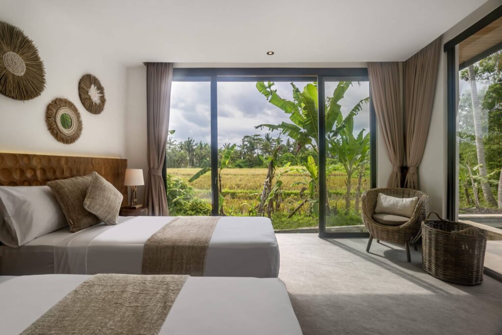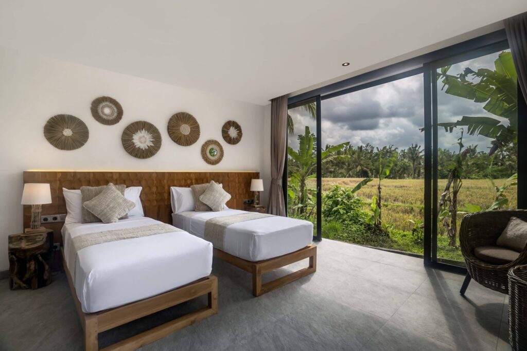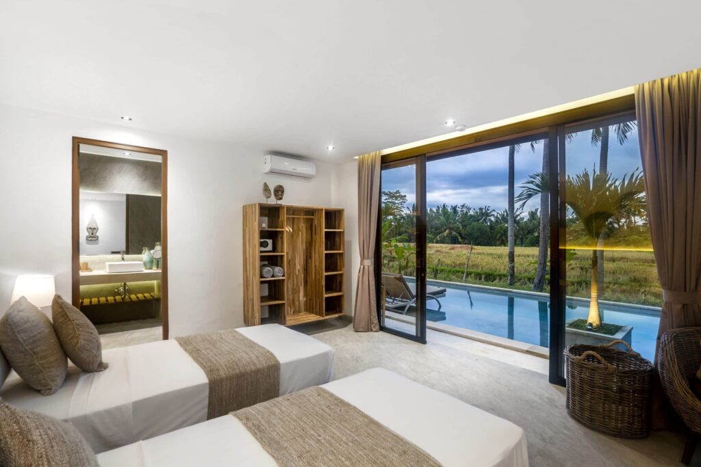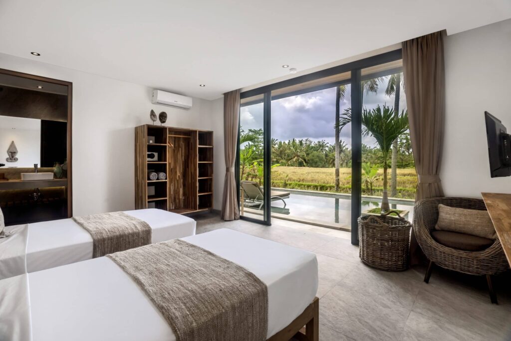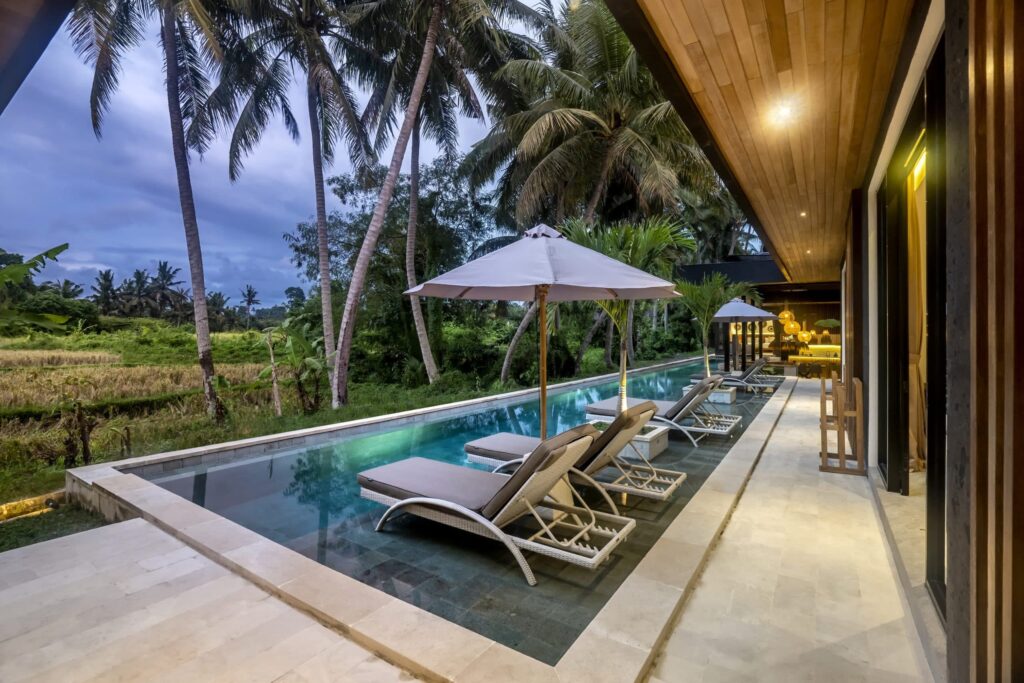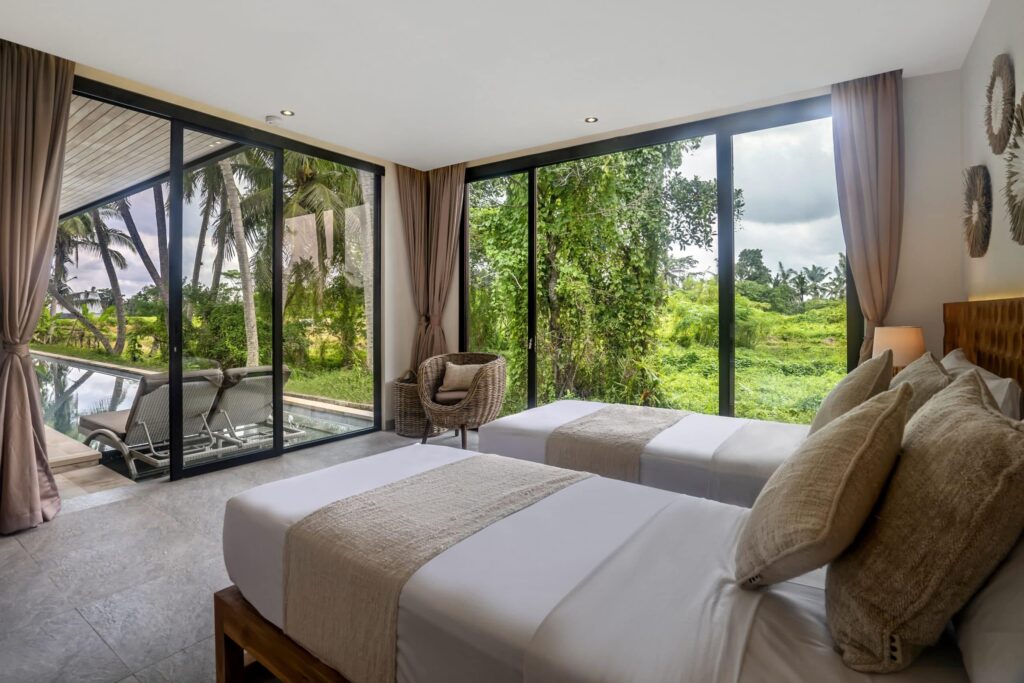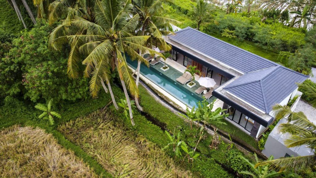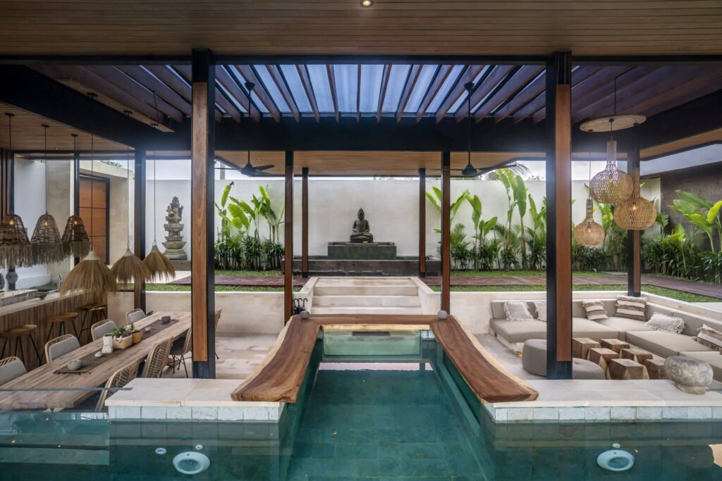 Built on a big plot of land of 500 m2, this villa consists of gorgeous open living area sheltering dining are with gorgeous style and its well-equipped kitchen overlooking to a beautiful Ubud’s lush nature and long swimming pool. The 4 luxury bedrooms come with comfortable beds and stunning en suite bathrooms.