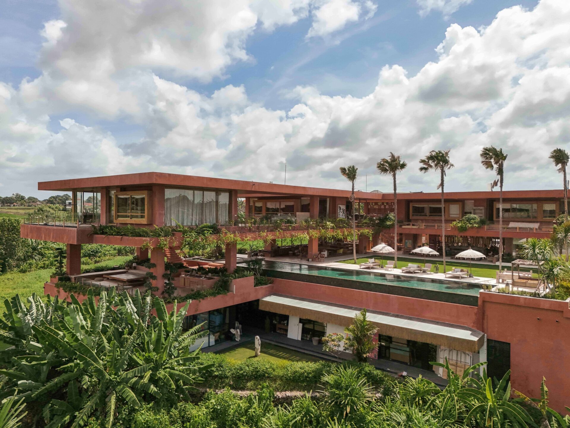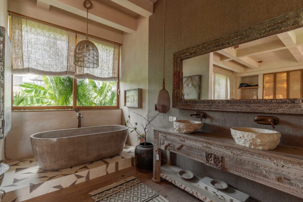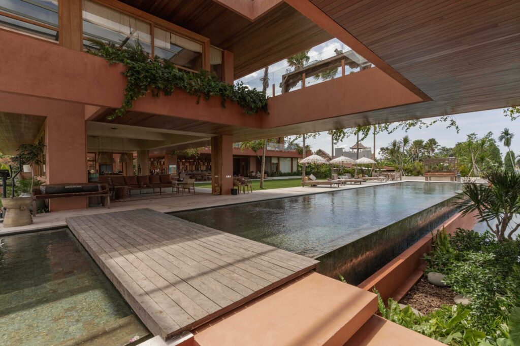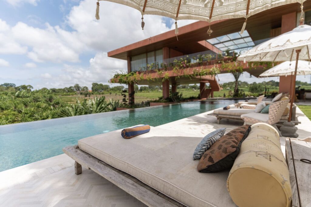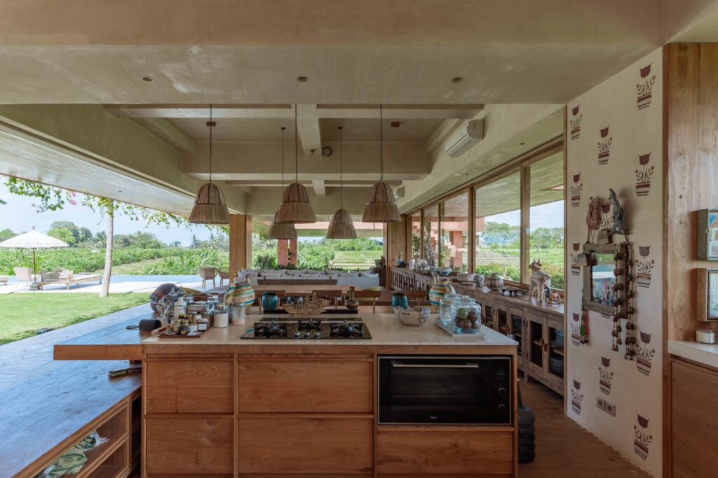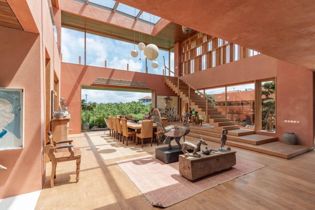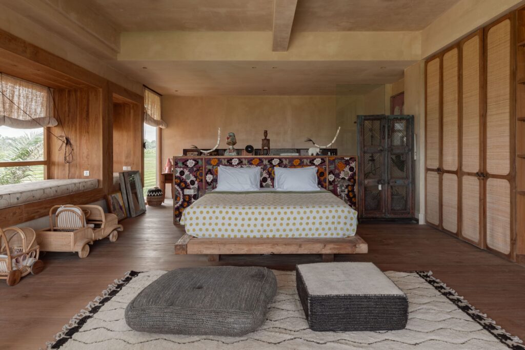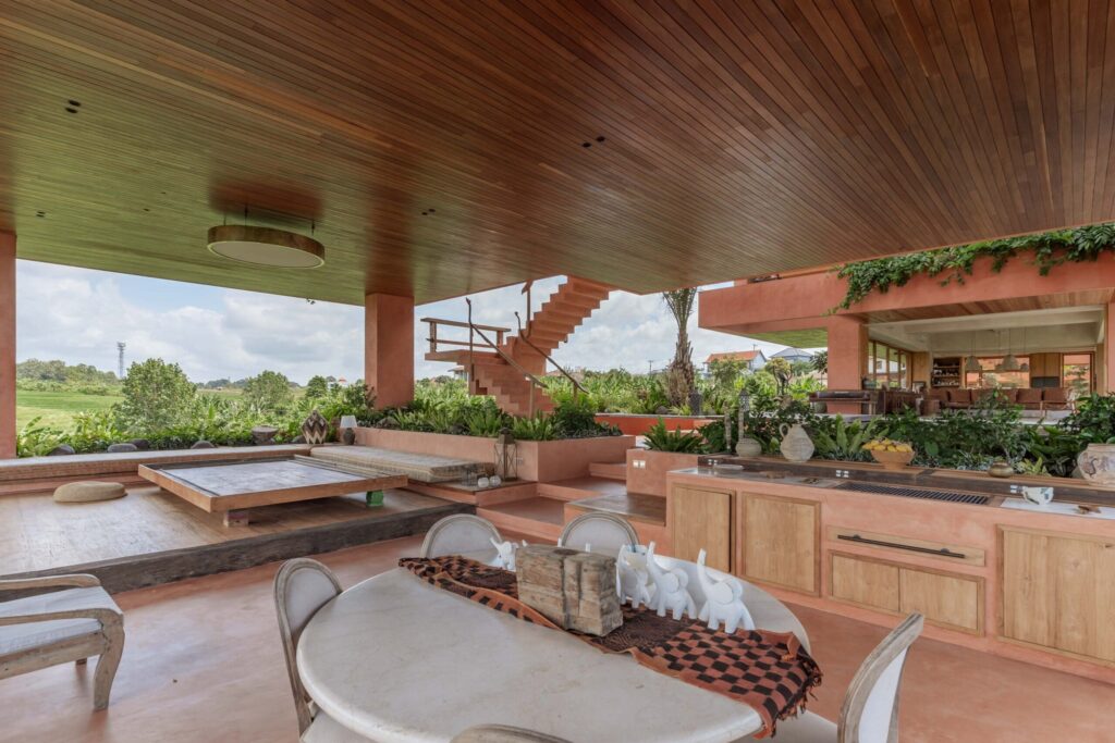 Occupying an expansive 23-are plot with uninterrupted rice paddy vistas and breathtaking sunsets, the estate has been masterfully envisioned by a renowned architect in collaboration with a world-acclaimed artist. The design weaves together artistry and functionality, showcasing a captivating collection of antiques, bespoke art pieces, and layered textures inspired by Bali, India, and Africa.