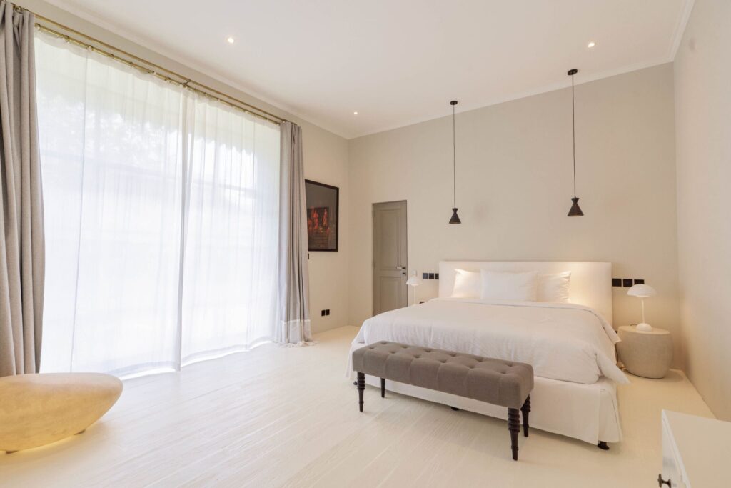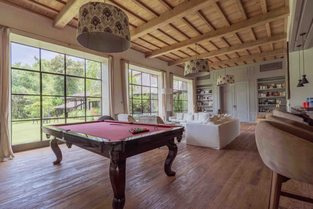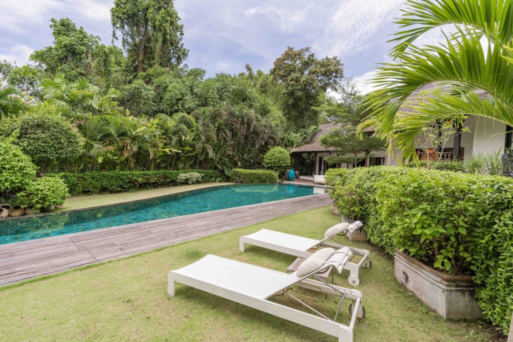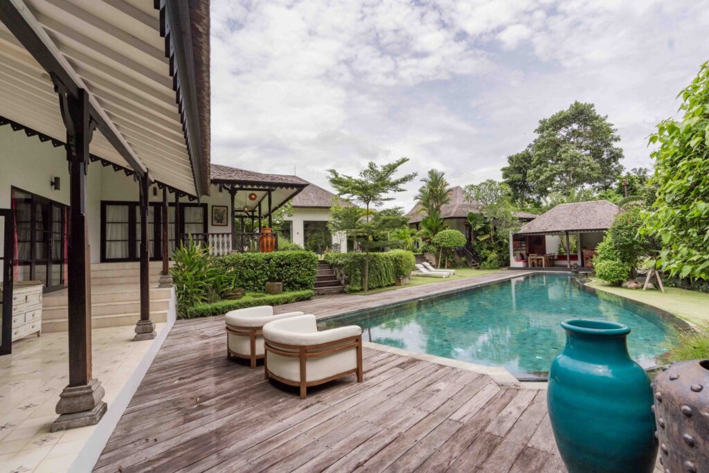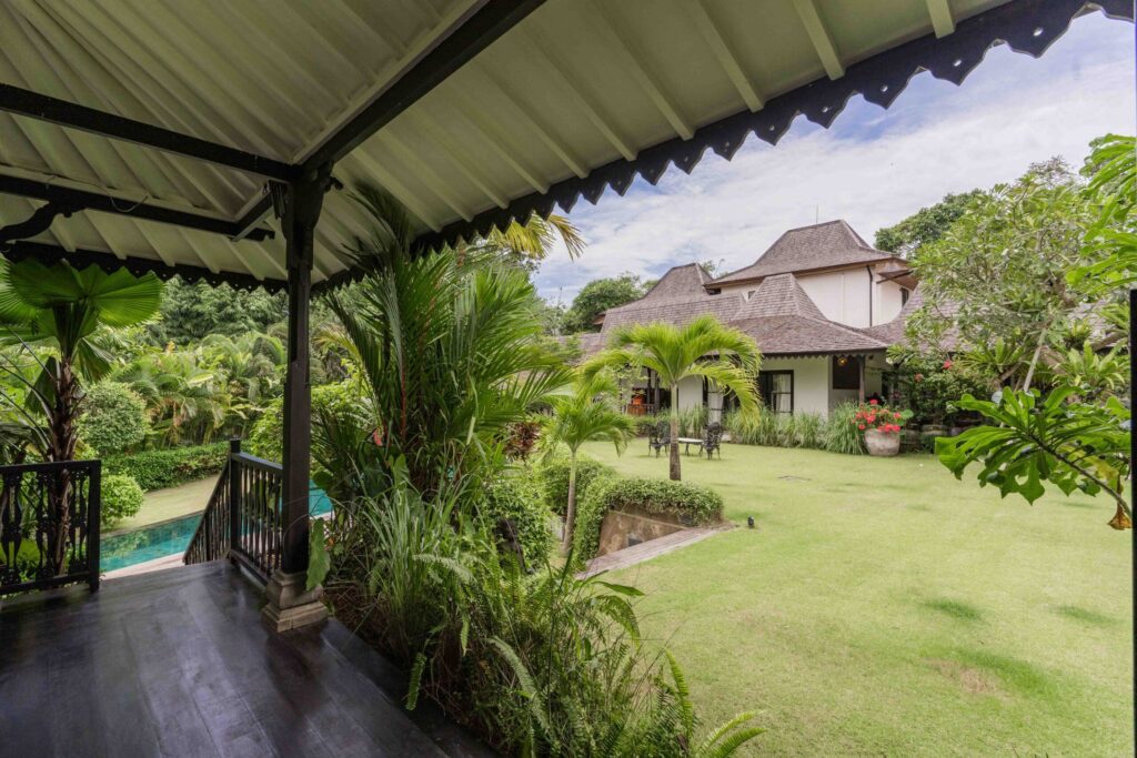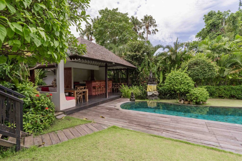 Discover your idyllic refuge in this elegant villa that exudes palatial-Balinese design. The interior features a sophisticated open-plan living, dining, and a fully equipped kitchen, amplifying the infusion of natural light and exuding a radiant and hospitable ambiance overlooking a panoramic view of the expansive verdant garden and serene swimming pool, fostering a peaceful and alluring environment. All the commodious en suite bedrooms are spread over the building with each own unique design.