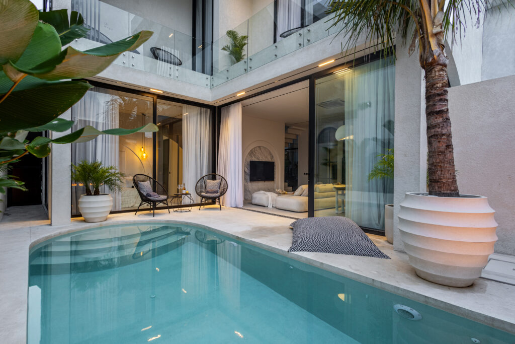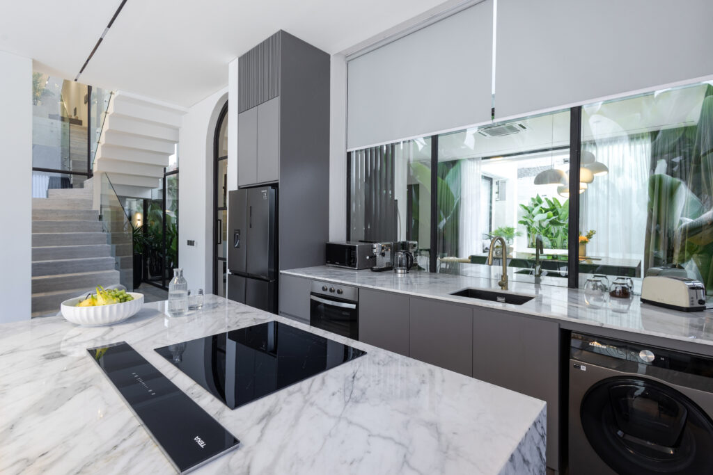Secure this opportunity to own villas that offer a harmonious blend of luxury, privacy, and comfort, making them the perfect place to call home in Bali. The interior of the villas is finished with luxury materials, including light and minimalistic interiors, custom furniture, and handmade decor elements. The air-conditioned living areas are equipped with layered lighting and soundproof aluminum windows, while the natural marble finishes allow a touch of elegance and are integrated with the dining area and a fully-equipped kitchen featuring high-end appliances and a custom design. The bedrooms boast built-in wardrobes with mirror glass and en-suite bathrooms with unique decor elements. The balconies along the second floor offer breathtaking views and are perfect for relaxing with a cup of coffee or a glass of wine. The private road inside the complex provides easy access to the parking lots located beside each villa. Each villa is surrounded by a private fenced area, ensuring complete privacy and security.