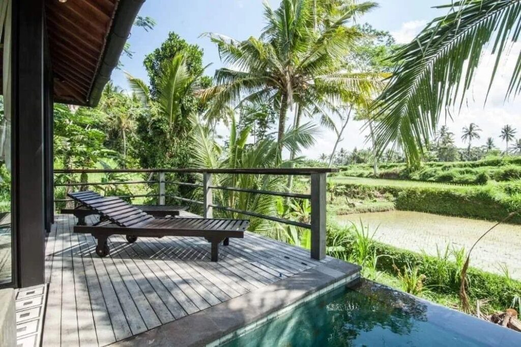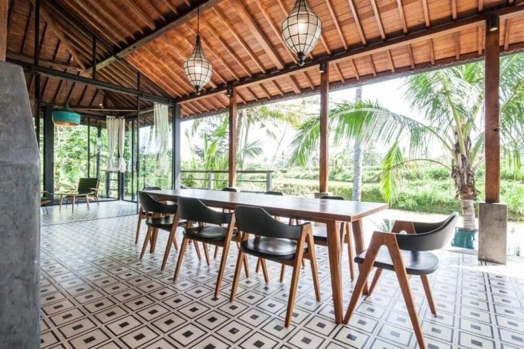 Unleash your inner peace in this serene Ubud villa with its open living area boasting the combination of natural elements and modern touch integrated with the dining area and a fully-equipped kitchen that overlooks the outdoor space, perfect for enjoying and basking in the Ubud tranquility. The outdoor space is completed with an infinity pool directly overlooking the beautiful ricefield views to experience the fullest enjoyment. All the sleeping areas are ensuite and completed with floor-to-ceiling windows allowing plenty of natural light to all the rooms.