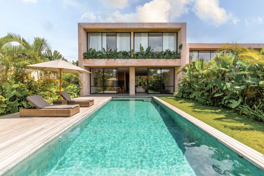 Wonderful 4 bedrooms brutalist tropical villa is situated in the customary expatriate hub, Tiying Tutul, North Pererenan with only a 15-minute drive away to Pererenan beach.