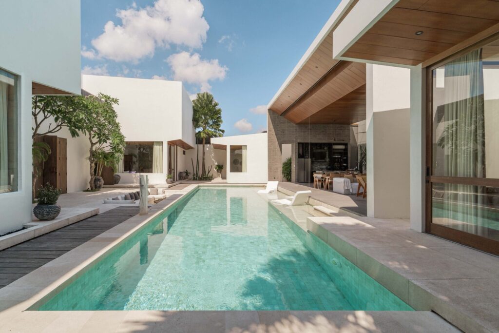 It is situated close to renowned restaurants, cafes, and beach clubs that Bali is famous for. Despite its proximity to popular tourist spots, the villa is nestled in a tranquil location surrounded by the few remaining rice fields in central Canggu, offering a peaceful retreat.