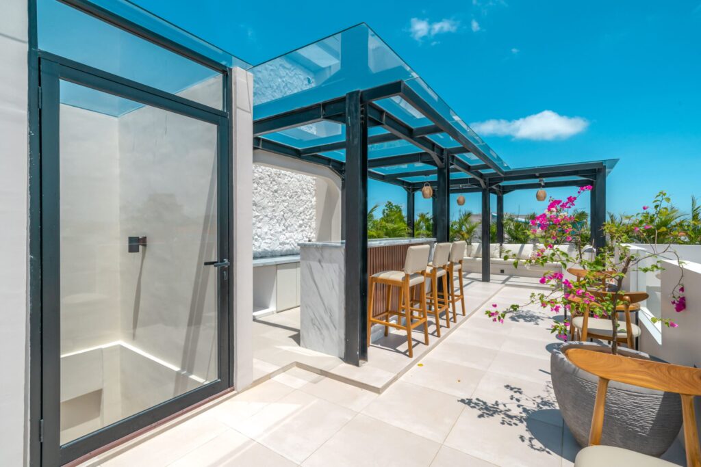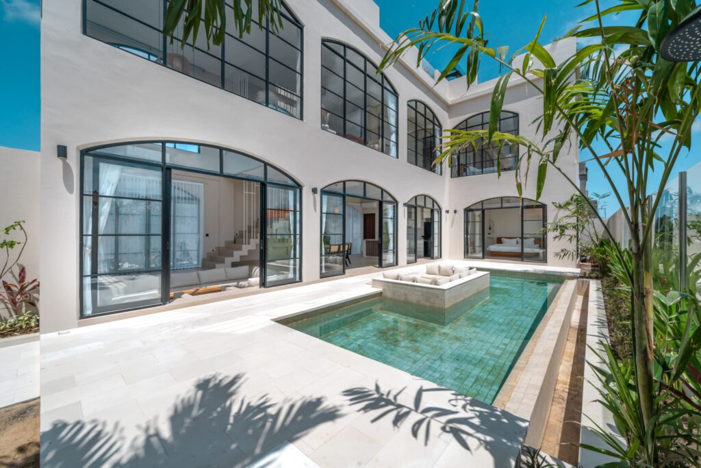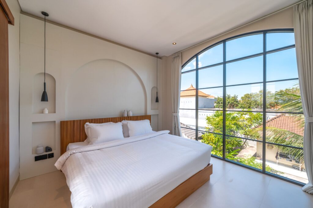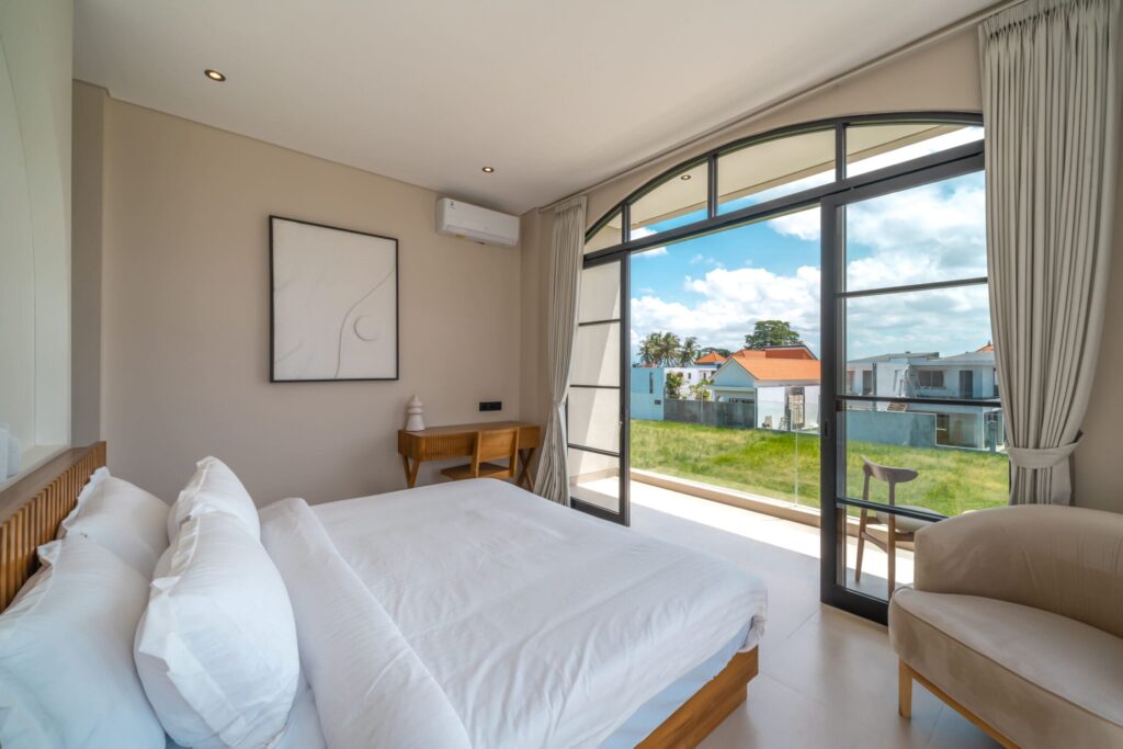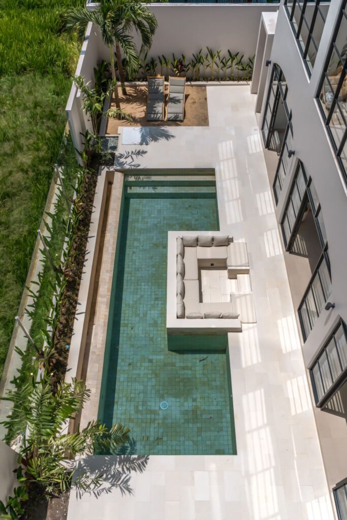 Spanning across a generous expanse of 300 square meters, treating you to sweeping views of majestic volcanoes and lush rice fields. The modern yet bohemian design of these villas is a true work of art, designed to captivate your senses and offer a haven of beauty and comfort. As you step into your sanctuary, you’ll be greeted by a spacious living room adorned with a mezzanine that adds an extra layer of charm and sophistication. The fully equipped kitchen stands ready to unleash your culinary creativity, while an additional living room adds versatility to the space – perfect for moments of solitude, relaxation, or even as a convenient workspace for your professional pursuits. With three meticulously designed bedrooms, each thoughtfully crafted to offer a unique blend of comfort and elegance, every corner of these villas exudes luxury. The lavish master room is a testament to opulence, featuring a walk-in closet that seamlessly marries style with practicality. Elegant bathrooms serve as sanctuaries of relaxation, inviting you to unwind and rejuvenate in an ambiance of pure bliss. For those who crave a view from above, ascend to the panoramic rooftop terrace and experience a world above the clouds. Immerse yourself in the warm embrace of the Jacuzzi as you watch the sun dip below the horizon, painting the sky in hues of gold and pink. The bar beckons, inviting you to craft signature cocktails while basking in the natural beauty that envelops you, creating memories that will last a lifetime.