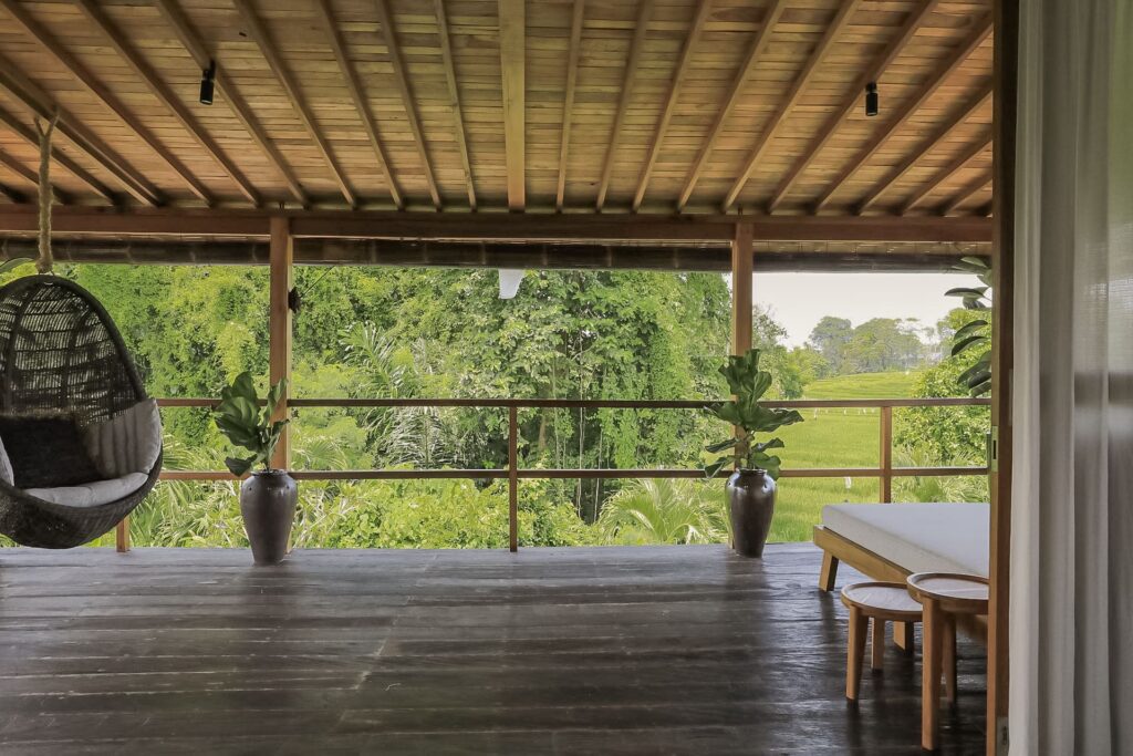 Imagine waking up to the awe-inspiring panoramic views of the forest and rice fields right from your sleeping area. This villa comprises one en-suite bedroom and two additional bedrooms, all equipped with air conditioning systems and convenient front terraces. Additionally, the property includes two storage rooms and a private parking area for your convenience.