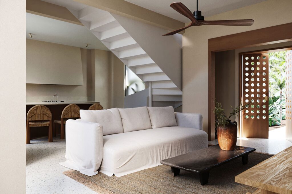 These villas stand as a testament to modern architectural excellence and exceptional design, setting themselves apart from anything you’ll find in Bali. Embracing the contemporary aesthetics of soft minimalism, this complex is meticulously crafted to cocoon you in comfort and cater to your most intrinsic needs. The project’s color palette draws inspiration from sacred and mysterious flowers, adding an element of mystique. Each villa comes fully furnished and equipped with all the essential appliances and interior elements, complemented by a private pool and a leisure area. The commitment to quality is unwavering, as we employ the highest-grade, sustainable materials throughout the construction process, aligning seamlessly with our environmentally conscious philosophy. The villa boasts a decent open-plan living room on the ground floor seamlessly connected with the dining room and a modern kitchen overlooking a beautiful pool and greeneries. All the bedrooms are on the first floor offering intimacy. For your peace of mind, we offer a generous 3-year guarantee for the villa’s structural integrity. Additionally, upon acquiring the villa, you have the option to agree with our esteemed management company.
