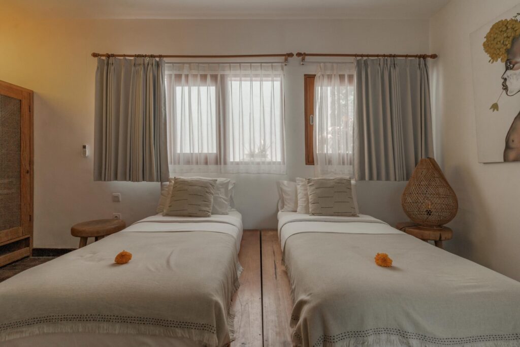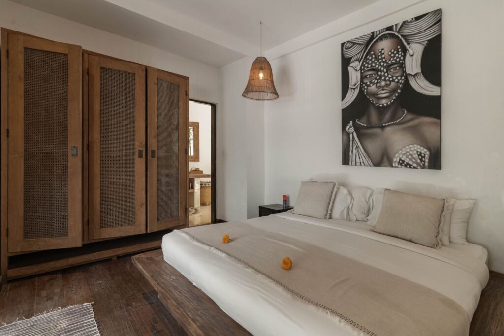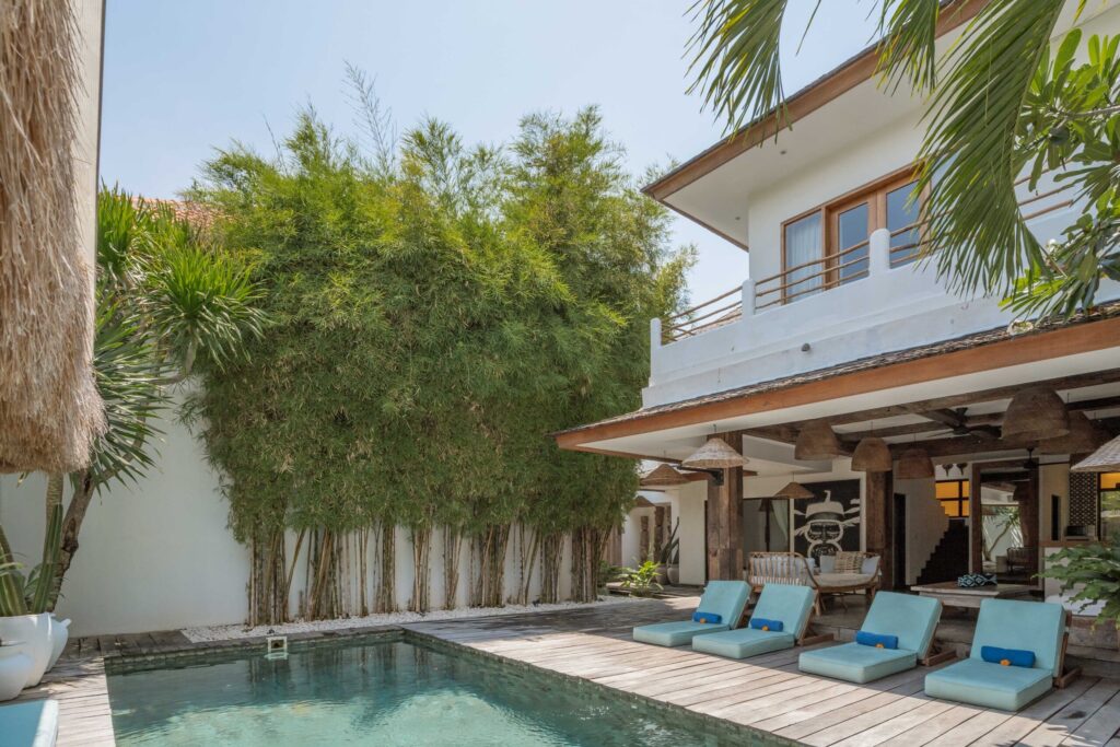 Get ready for a dazzling modern contemporary villa to spoil you. Each of the four bedrooms is a sanctuary of comfort and style, providing a peaceful haven for rest and rejuvenation. The decor reflects the villa’s distinctive character. The villa’s open-air living areas seamlessly connect the indoors and outdoors, allowing you to relax in the gentle breeze while appreciating the natural surroundings. The kitchen also combines modern amenities with a contemporary touch, making it a delightful space for culinary exploration and shared meals. Take a refreshing dip in your private pool, surrounded by tropical greenery, providing a perfect spot to unwind. The villa comes with a private parking area with a decent size for two cars or several bikes.