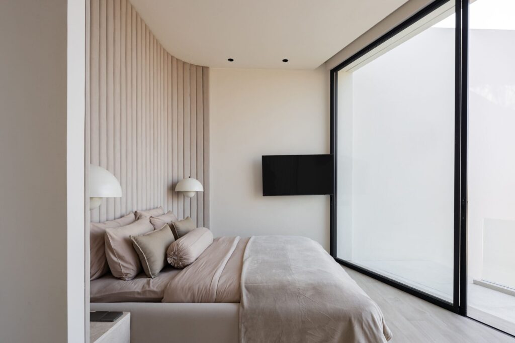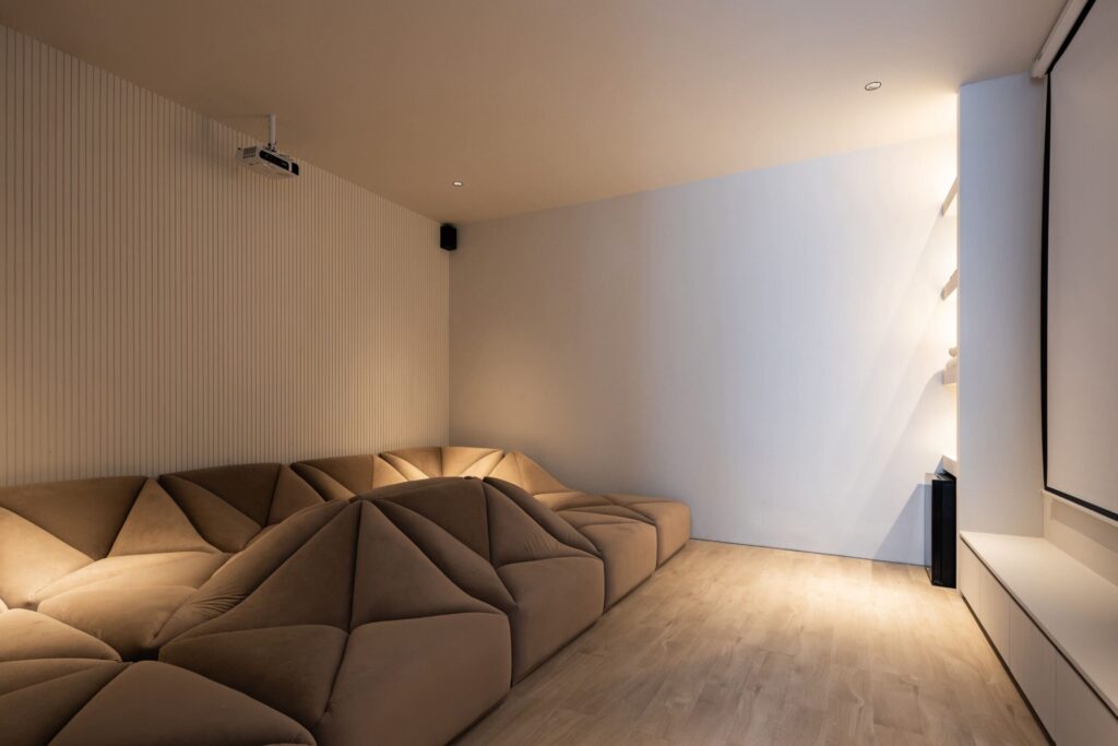 Indulge in the epitome of sleek elegance with this villa, featuring a minimalist exterior adorned with clean white and stone materials, exuding an aura of pristine organization. The villa comprises four bedrooms, each accompanied by its own ensuite bathroom, ensuring both comfort and privacy. An additional guest toilet adds convenience to the layout. The enclosed living area is seamlessly connected to an open-plan kitchen and dining room, creating a harmonious space for relaxation and entertainment. For those cinematic moments, a dedicated theater room awaits. Step outside to discover a refreshing pool, perfect for leisurely dips under the sun.