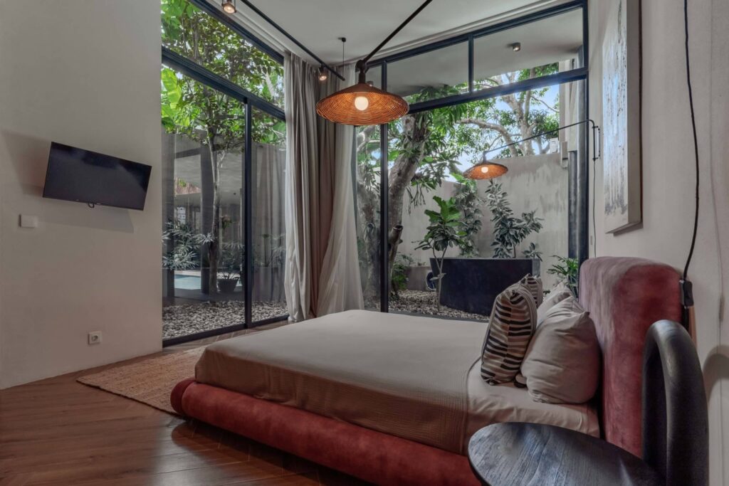 Nestled in the heart of Canggu, this villa boasts an enviable location surrounded by fantastic dining options such as Milk and Madu, trendy shopping destinations along Batu Bolong Street, and breathtaking sunset views at Old Man’s or The Lawn Beach Club.