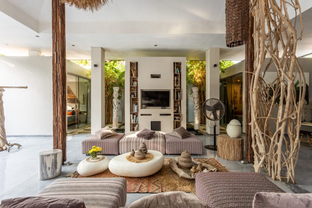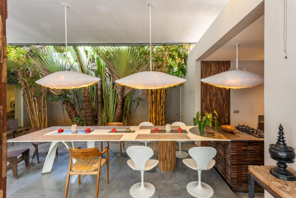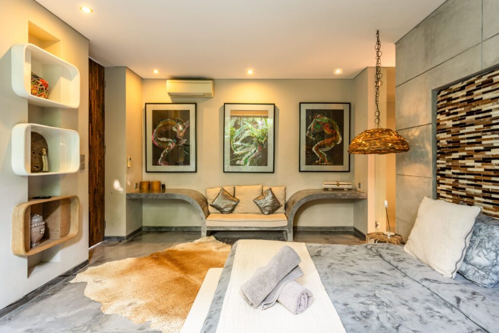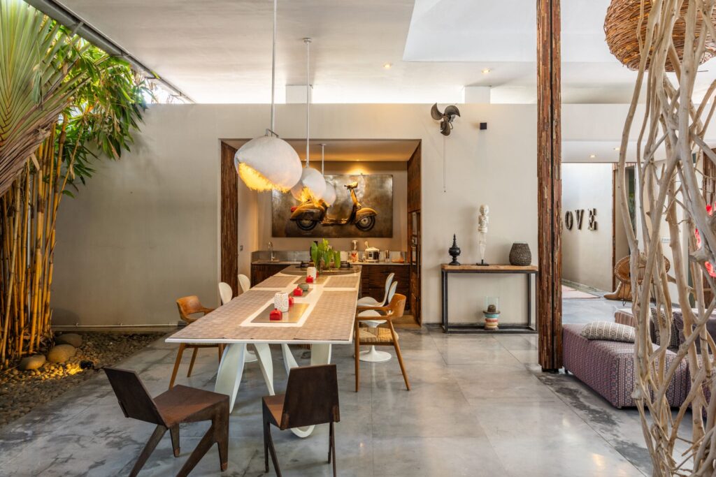 This villa was crafted by the renowned Pierre Desmidt, celebrated for his work on prestigious projects like the iconic Terre Blanche Hotel in Southern France, this property boasts an exquisite design that seamlessly blends diverse styles. Drawing inspiration from a mix of textures and colors, Desmidt’s artistic vision brings together a cohesive and visually stunning interior radiating with sophistication and allure. This unique design approach, characterized by its ingenuity and meticulous attention to detail, elevates the property to a level of refinement that is certain to captivate even the most discerning individuals. Situated on a spacious plot of 600 square meters and spread across a single level, the residence offers a generous living space of 310 square meters, featuring three bedrooms meticulously crafted to provide both comfort and style. The layout encompasses an open-plan living area that effortlessly integrates indoor and outdoor spaces, fostering an inviting ambiance ideal for relaxation and socializing. With its impeccable design and coveted location, this villa presents an unparalleled opportunity to indulge in luxurious living in the heart of Berawa.