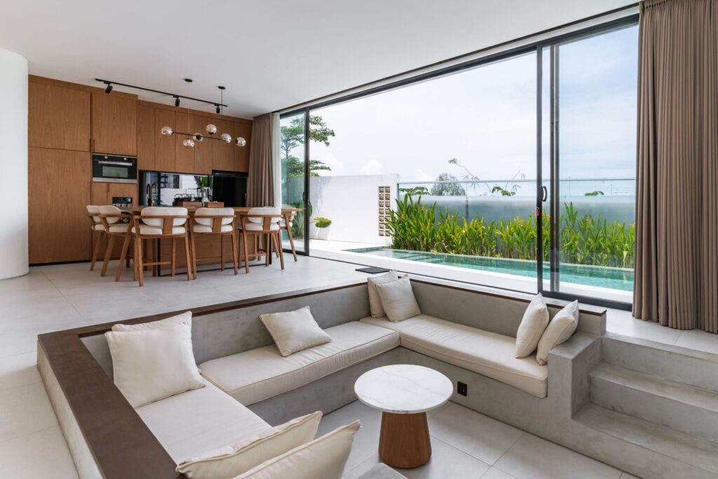 Getting inside the property, its substantial and modern enclosed convivial area would impress you in no time, coming encasing the living-dining area and its fully equipped kitchen with a direct access to its enticing pool through its glass door. Take a refreshing deep into the pool while enjoying the amazing lure of the panoramic green belt at front. The sleeping area comprises 3 spacious bedrooms which are all ensuited and nestled on the first floor, perfectly set overlooking the swimming pool and natural view. Taking a step upstairs, you would find an immense outdoor area consists of a central mini bar and sitting area as a perfect space to relax with your family and friends.