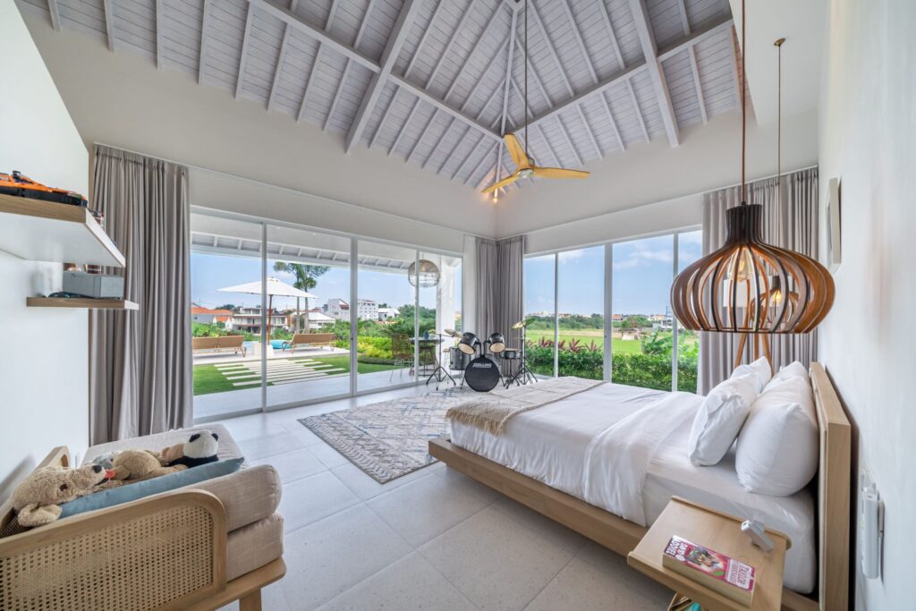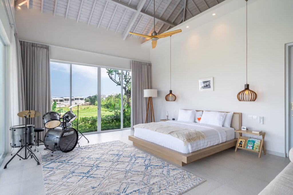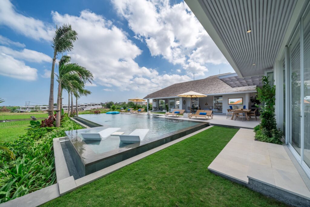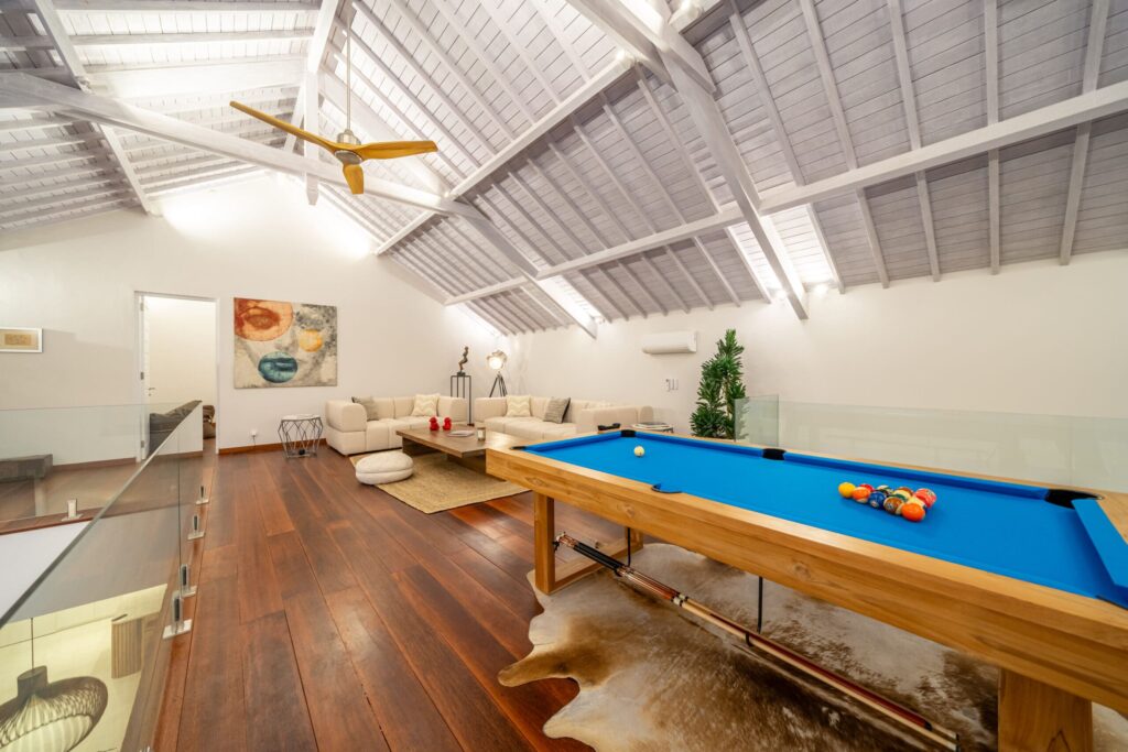 This stunning villa features 4 spacious bedrooms, each with an ensuite bathroom, ensuring comfort and privacy for all guests. The villa boasts a generous enclosed living area, a fully equipped kitchen, and a dining area perfect for family gatherings or entertaining guests. The second floor includes an open mezzanine with luxury amenities, such as a billiard area and a cozy bean bag zone for movie watching in the dedicated movie room. Step outside to be welcomed by a sparkling pool, complete with a paddling pool for children. The adjacent chilling area is perfect for enjoying lunch or dinner with serene rice field views. The property also includes a 150 sqm shared garage for cars and bikes, and 24-hour security in a 70 sqm area, ensuring a safe and comfortable stay. This villa is an exceptional retreat for those seeking the best of Bali’s lifestyle.
