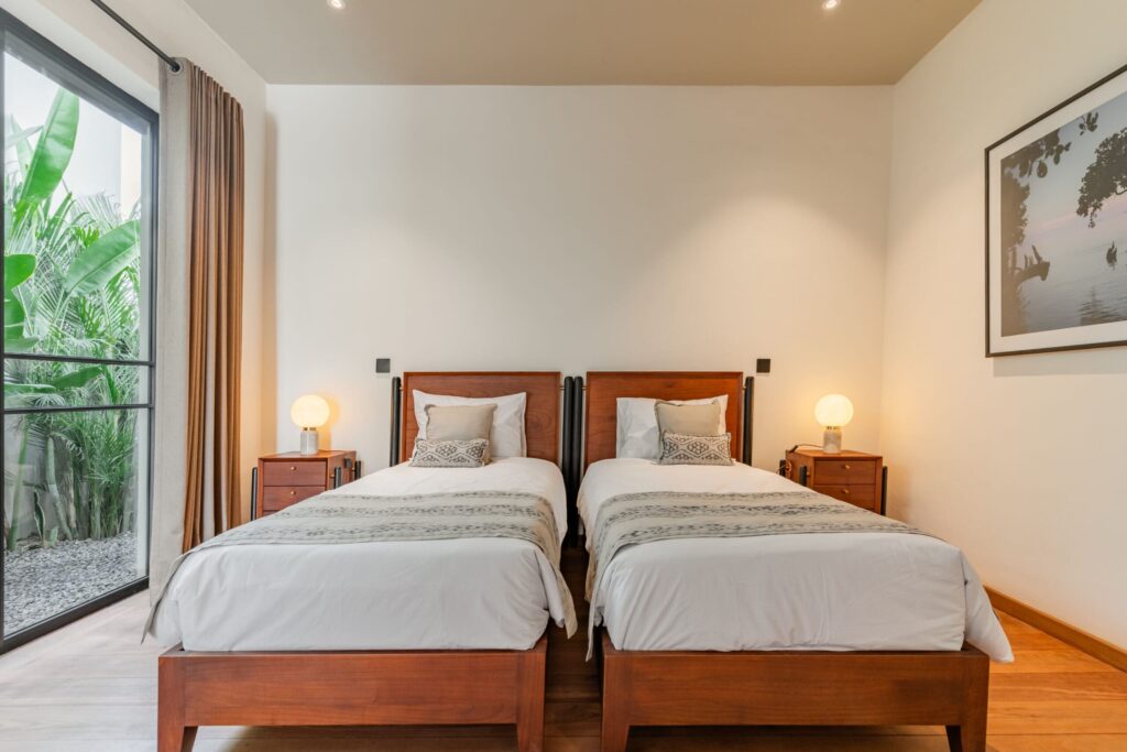 This villa is located in the charming Bumbak Dauh area of Umalas, this villa offers a prime position just 5 minutes from Seminyak Center, where you’ll find an array of delicious restaurants and vibrant attractions. For those who enjoy the beach, Berawa Beach is only a 15-minute drive away.