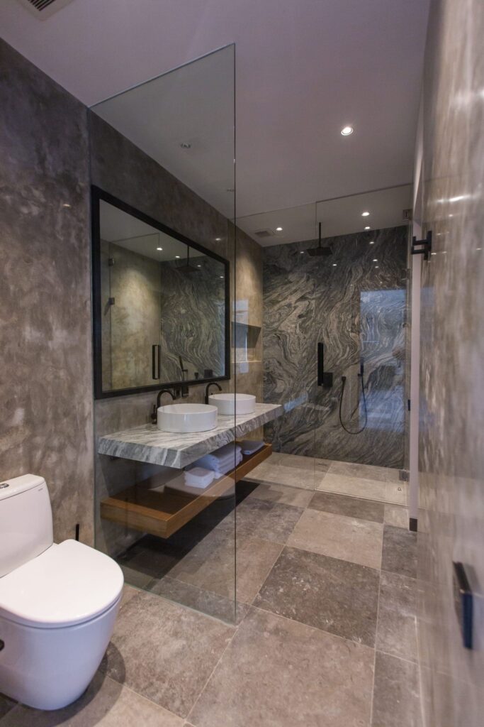 A stunning modern-luxe sanctuary blends perfectly within the serenity, beautifully maximalised with the radiant colours through the furniture and paintings in generating a lively atmosphere throughout the area. Spot on the best convivial spaces offered from its enclosed living area with a stylish sunken lounge, the open-layout lounge area on the upstairs, or on the sunbeds by the pool that would allow you to relax in nature with its incredible tropical lush garden. Areas of the fully equipped kitchen and the double sink bathrooms are coming with the textured marble walls to reflect the cleanliness even in low maintenance while as well completed with the exceptional quality of furnishings, solar panel, and water filter. All of the 4 bedrooms sleeping area are infused with the earthy style through the touch of natural wood and rattan to establish the warmth and comfortable atmosphere in the area. The property also provides a functional laundry room with two units of washing machine.
