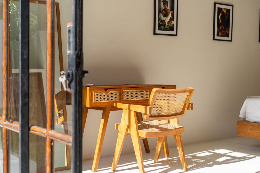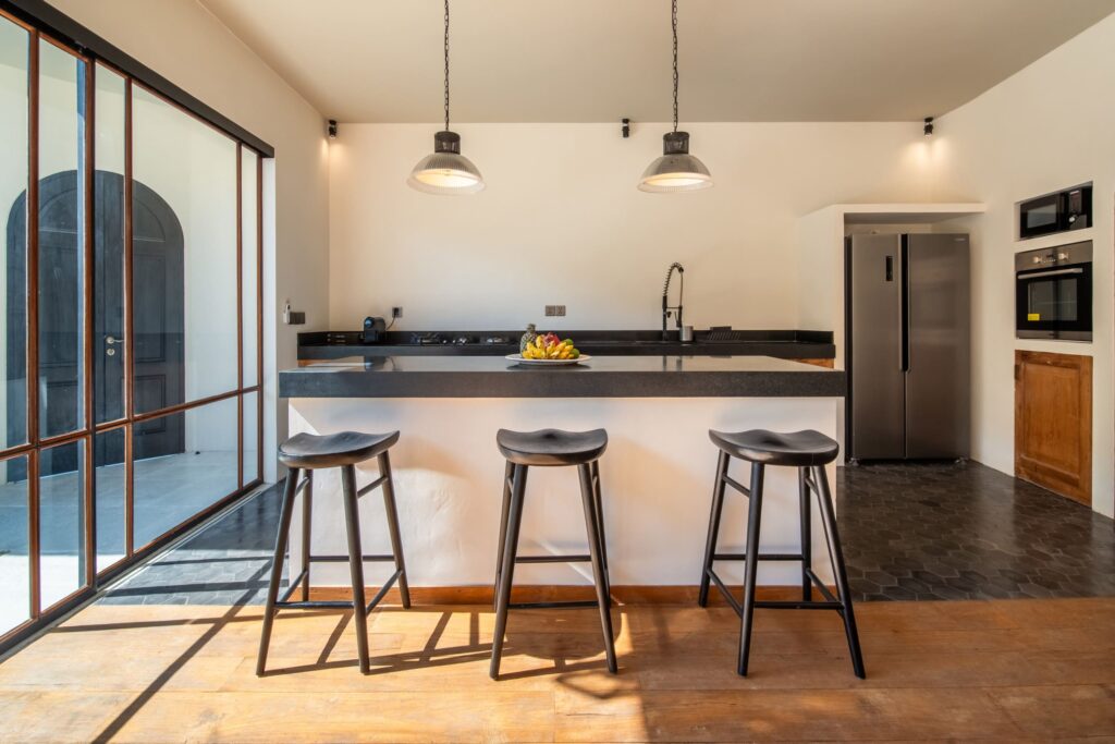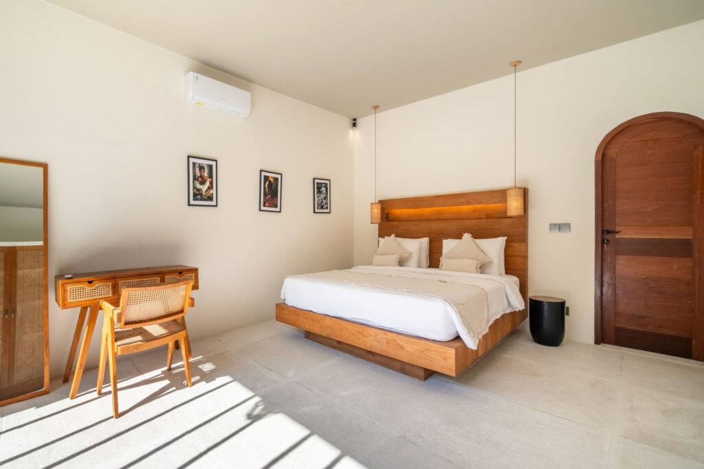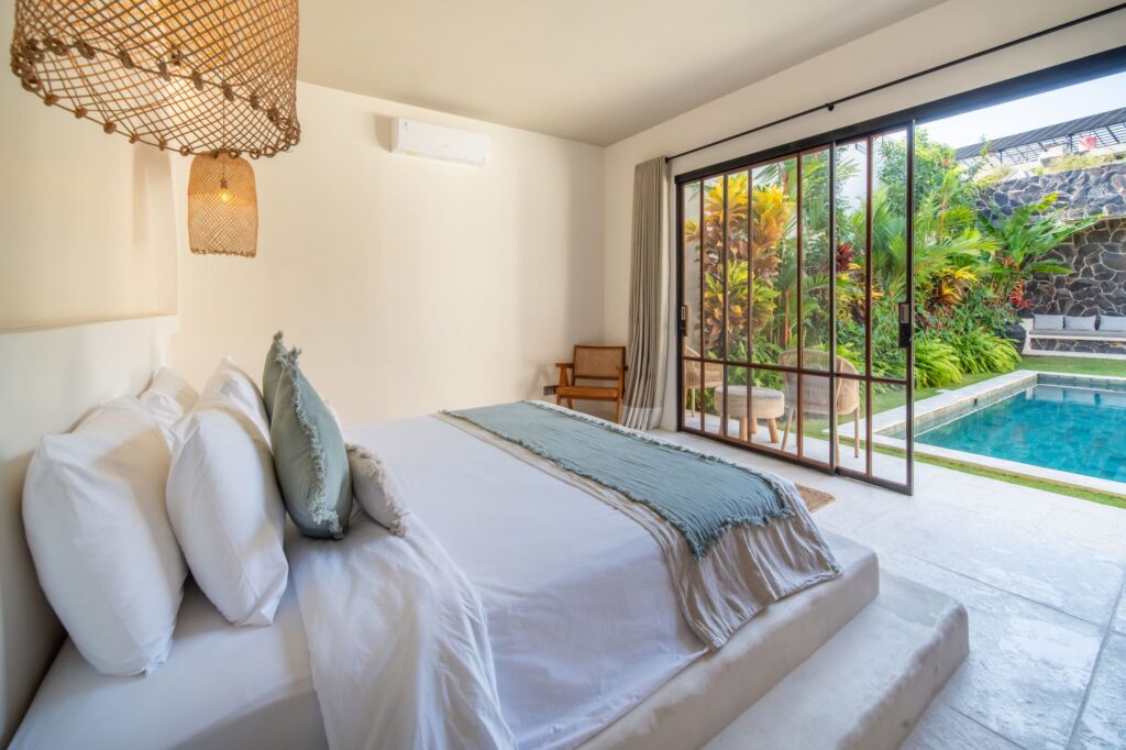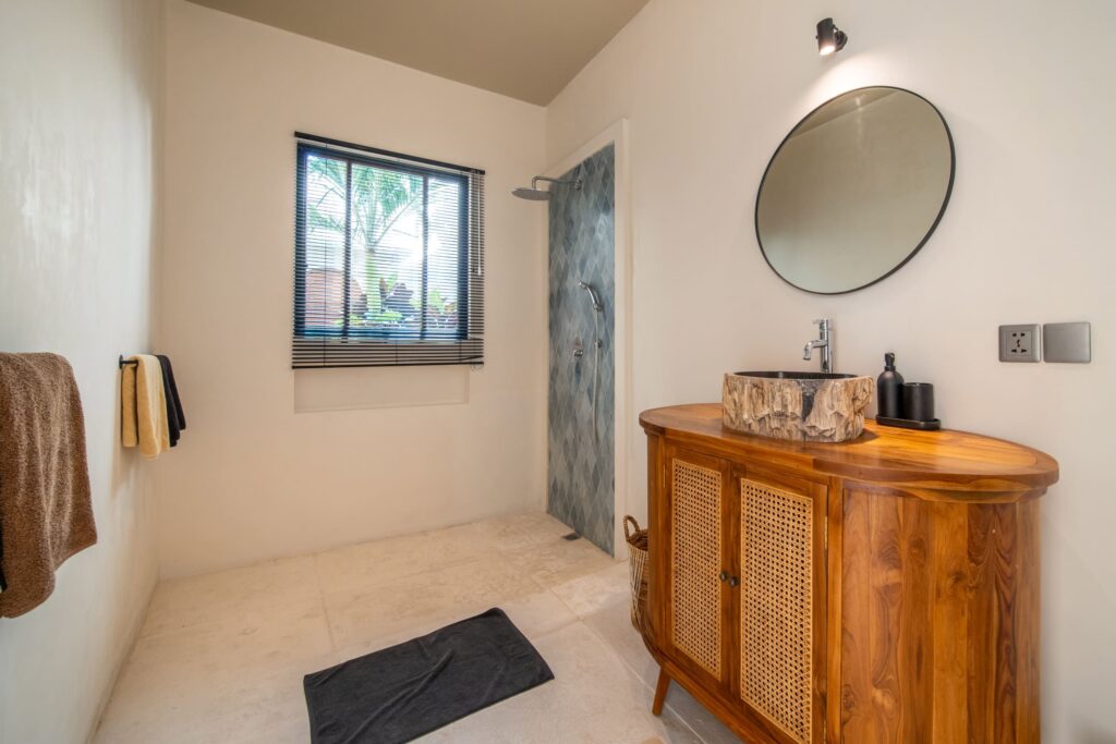 This stunning villa offers the perfect blend of comfort, style, and tranquility. With three spacious bedrooms, each featuring its own ensuite bathroom, you’ll enjoy privacy and relaxation at its best. The design effortlessly combines modern aesthetics with natural elements, with wooden furniture that harmonizes beautifully with the lush tropical surroundings. The fully equipped kitchen and dining area create a great space for cooking and enjoying meals, while the sunken living area, with its large glass walls, fills the space with natural light, making it an inviting spot to unwind. Step outside to discover a gorgeous long pool surrounded by vibrant greenery and sunbeds—ideal for lounging and soaking up the Bali sunshine. Whether you’re seeking a peaceful retreat or an unforgettable Bali getaway, this villa is your perfect escape.