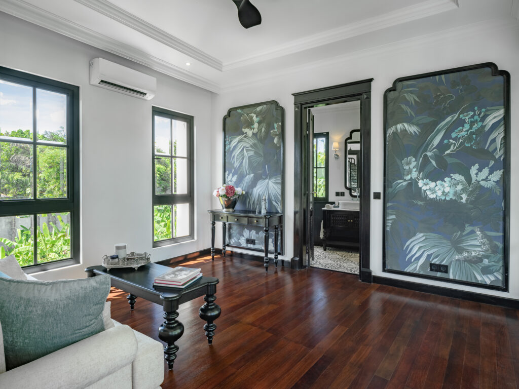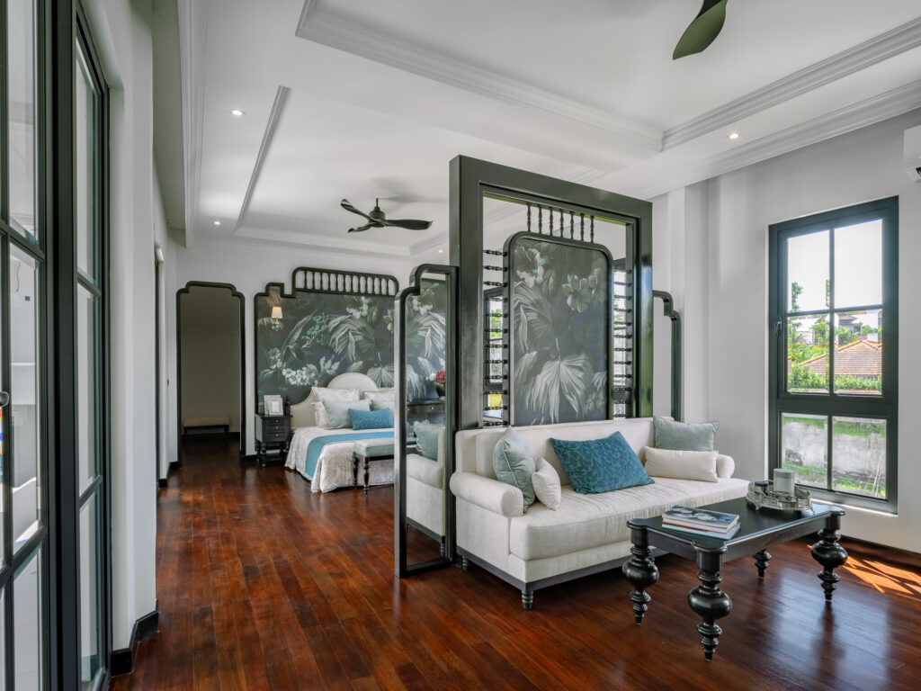This 7-bedroom villa is a stunning masterpiece that blends Colonial and Indochina design, creating an atmosphere of refined grandeur. Every detail of the home has been carefully crafted to balance opulence and comfort, from the impressive two-level, fan-shaped 15-meter pool that serves as the villa’s centerpiece, to the spacious, elegantly designed bedrooms and luxurious bathrooms. Set amidst a lush 100-year-old tree garden with mesmerizing river access, the villa offers ultimate tranquility and privacy. A grand 10-meter lobby welcomes you into sophisticated spaces, while a rooftop lounge and terrace provide panoramic views of the surrounding rice paddies and natural beauty. The open-plan dining area and gourmet kitchen make it perfect for entertaining, and extensive staff areas ensure your needs are always met. Whether you’re relaxing in the living room, enjoying the pool, or taking in the breathtaking vistas, this villa offers a rare blend of Hollywood-style luxury and serene comfort, making it the ultimate place to call home.