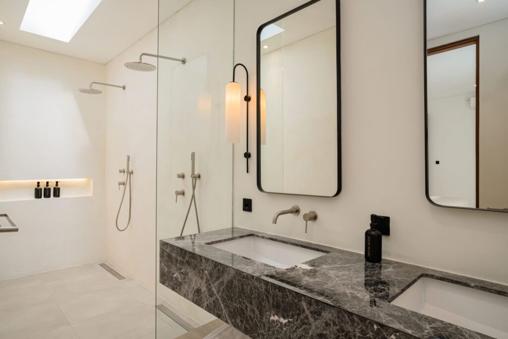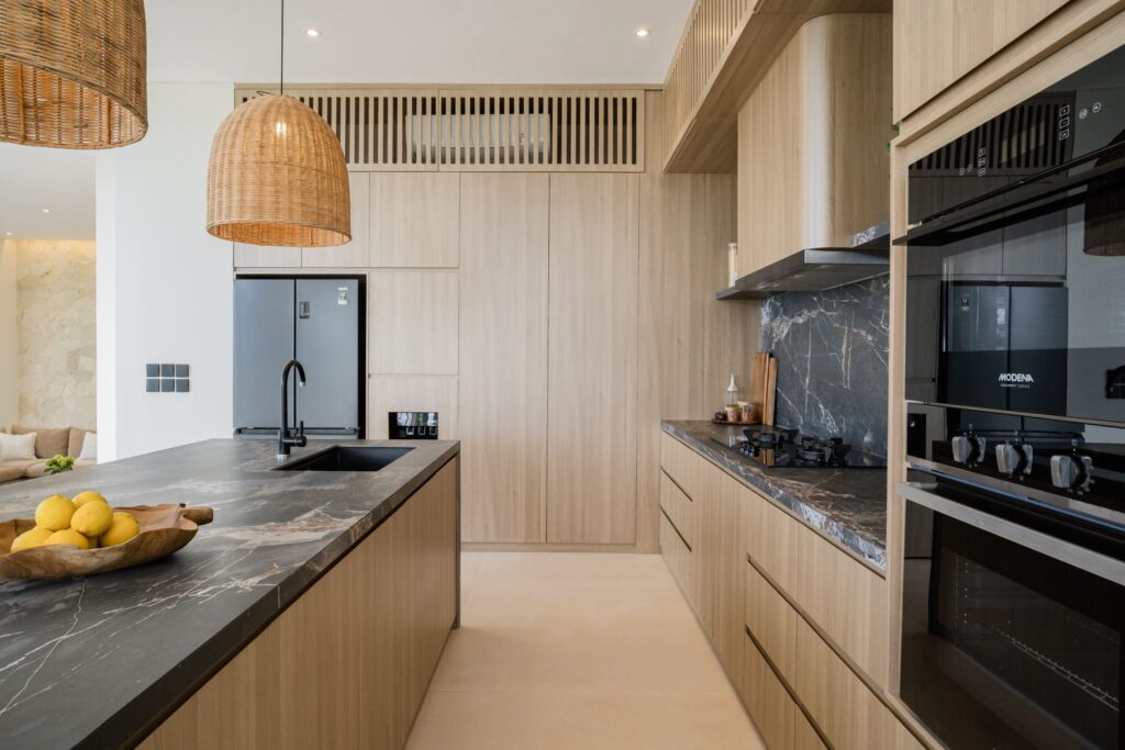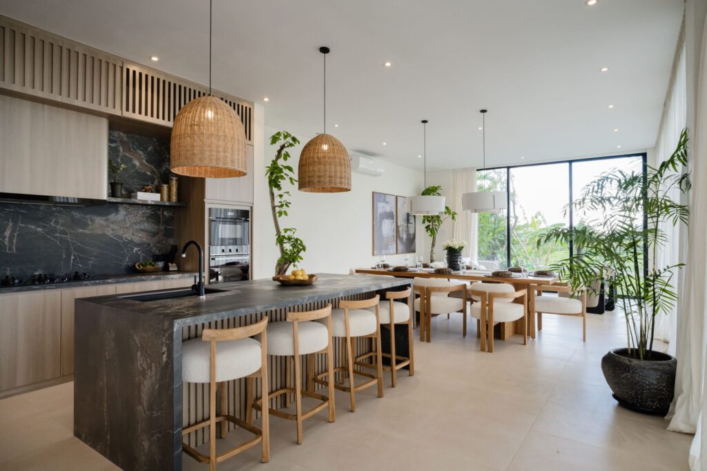 Featuring 4 beautifully appointed bedrooms, each designed as a private haven with soft neutral palettes and elegant ensuite bathrooms, the villa embraces a soothing aesthetic throughout. The open-concept living and dining area is the true heart of the villa—generously proportioned and inviting, with high ceilings and a layout that encourages connection and flow. A sunken lounge adds a contemporary twist, offering a cozy nook perfect for unwinding after a long day at the beach or entertaining guests in effortless style. The fully equipped kitchen sits nearby, ideal for preparing anything from fresh tropical breakfasts to intimate evening dinners.