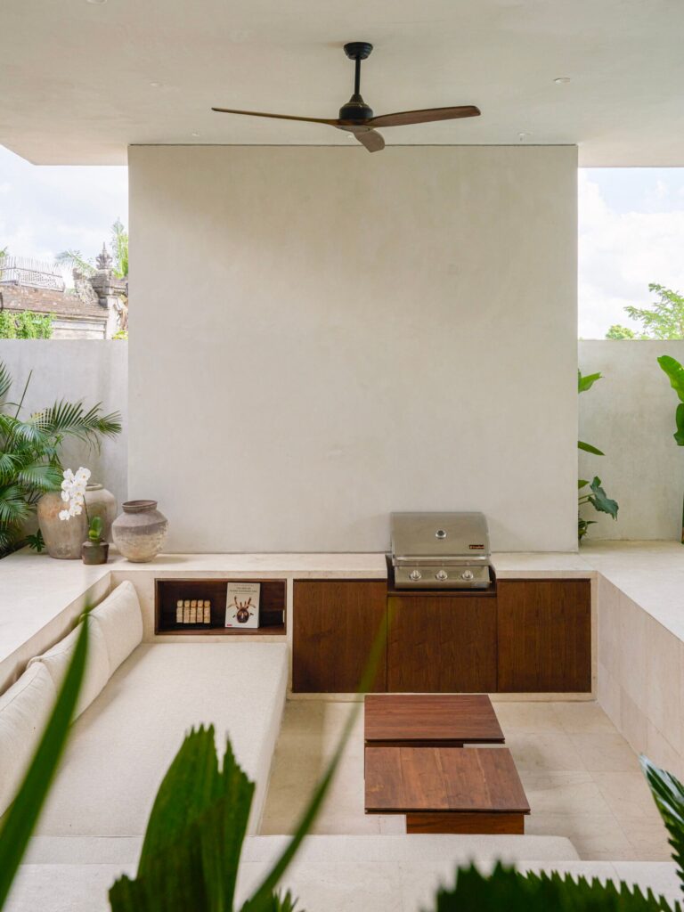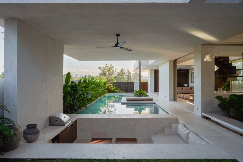 Outdoors, the residence unveils a private pool embraced by lush tropical landscaping, a sun deck for sun-soaked relaxation, and a sunken BBQ lounge—an idyllic setting for al fresco entertaining under Bali’s starlit skies.