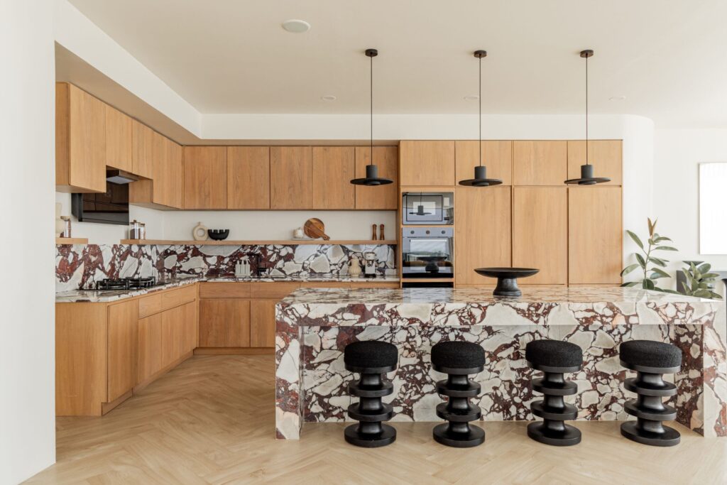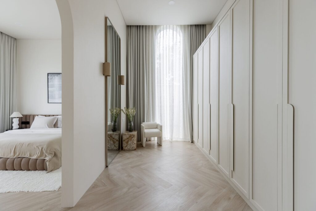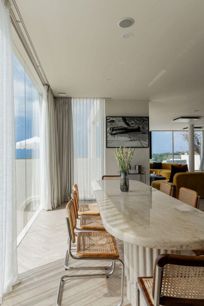 Spanning 3 meticulously crafted levels, the villa features 5 opulent ensuite bedrooms, two of which are equipped with integrated sound systems for a heightened sensory experience and walk-in wardrobes. The open-plan living, dining, and kitchen areas are adorned with bespoke finishes and flow seamlessly onto a sun-drenched pool deck, creating the ideal setting for sophisticated indoor-outdoor entertaining.