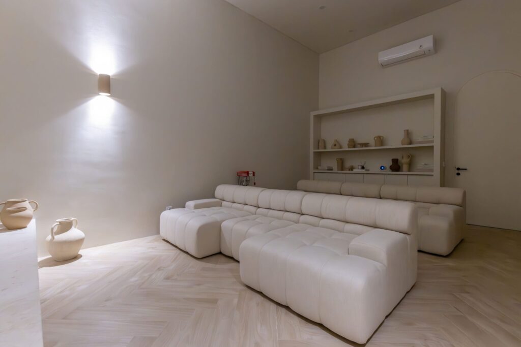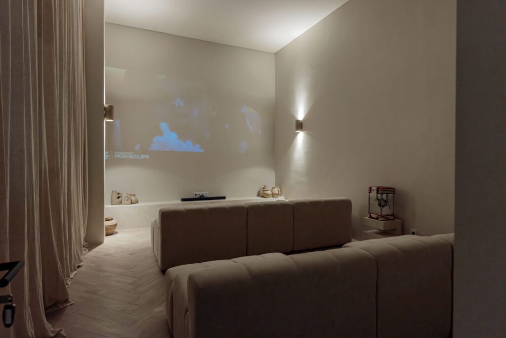 The upper level is crowned with a striking swimming pool, offering uninterrupted vistas of the Indian Ocean. This space is further elevated by a sunset-facing lounge, providing the perfect backdrop for unforgettable gatherings and tranquil evenings. Designed for the discerning resident, the home also includes a state-of-the-art private cinema room, a guest powder room, a fully equipped laundry room, and a spacious parking area.