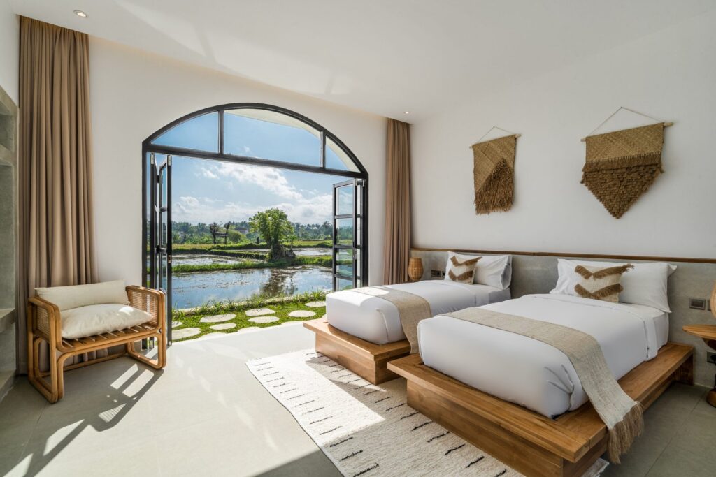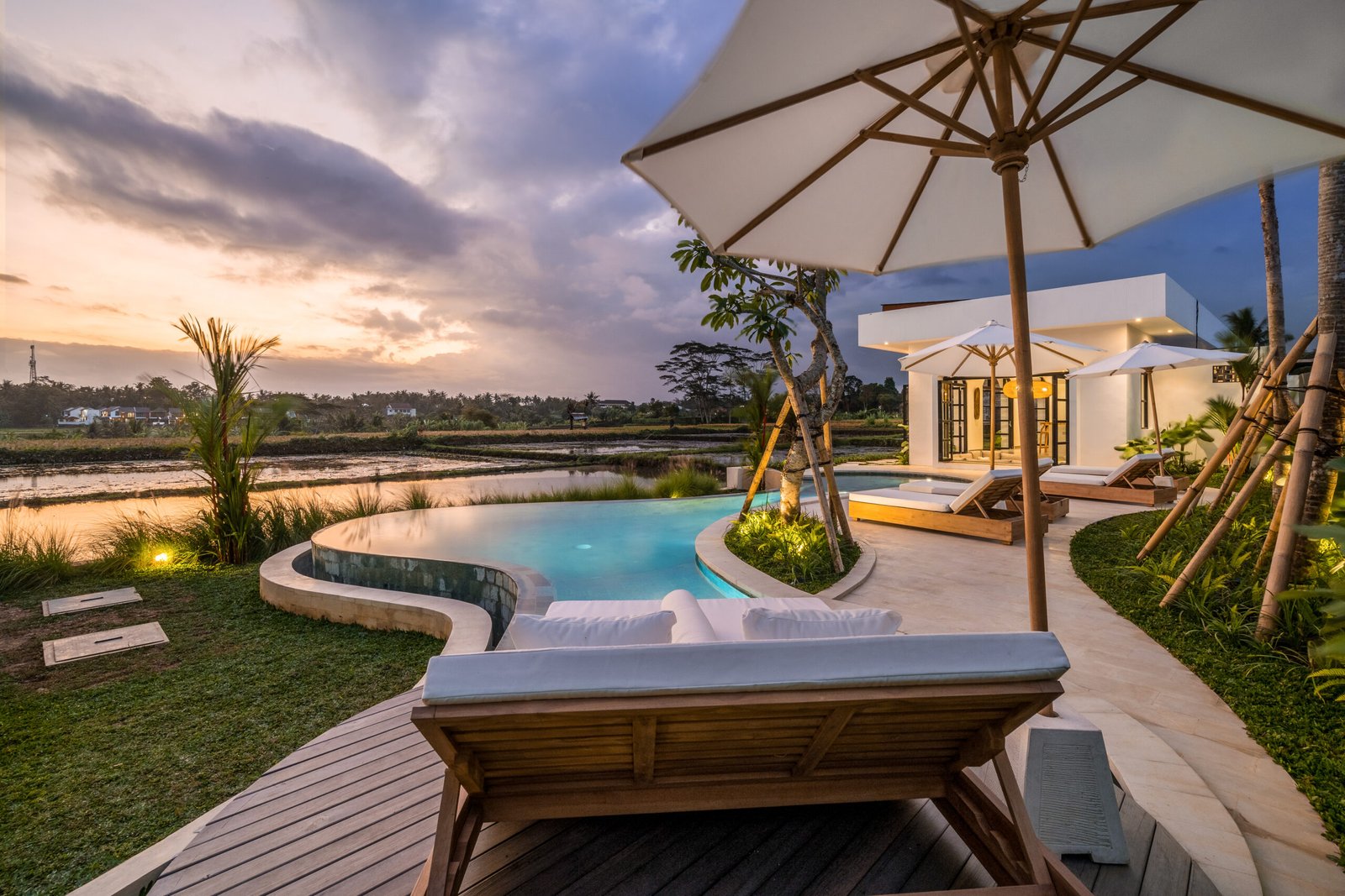 Nestled in the tranquil heart of Ubud, this modern bohemian-style villa is a serene sanctuary surrounded by the lavish greenery of Bali’s iconic rice fields.