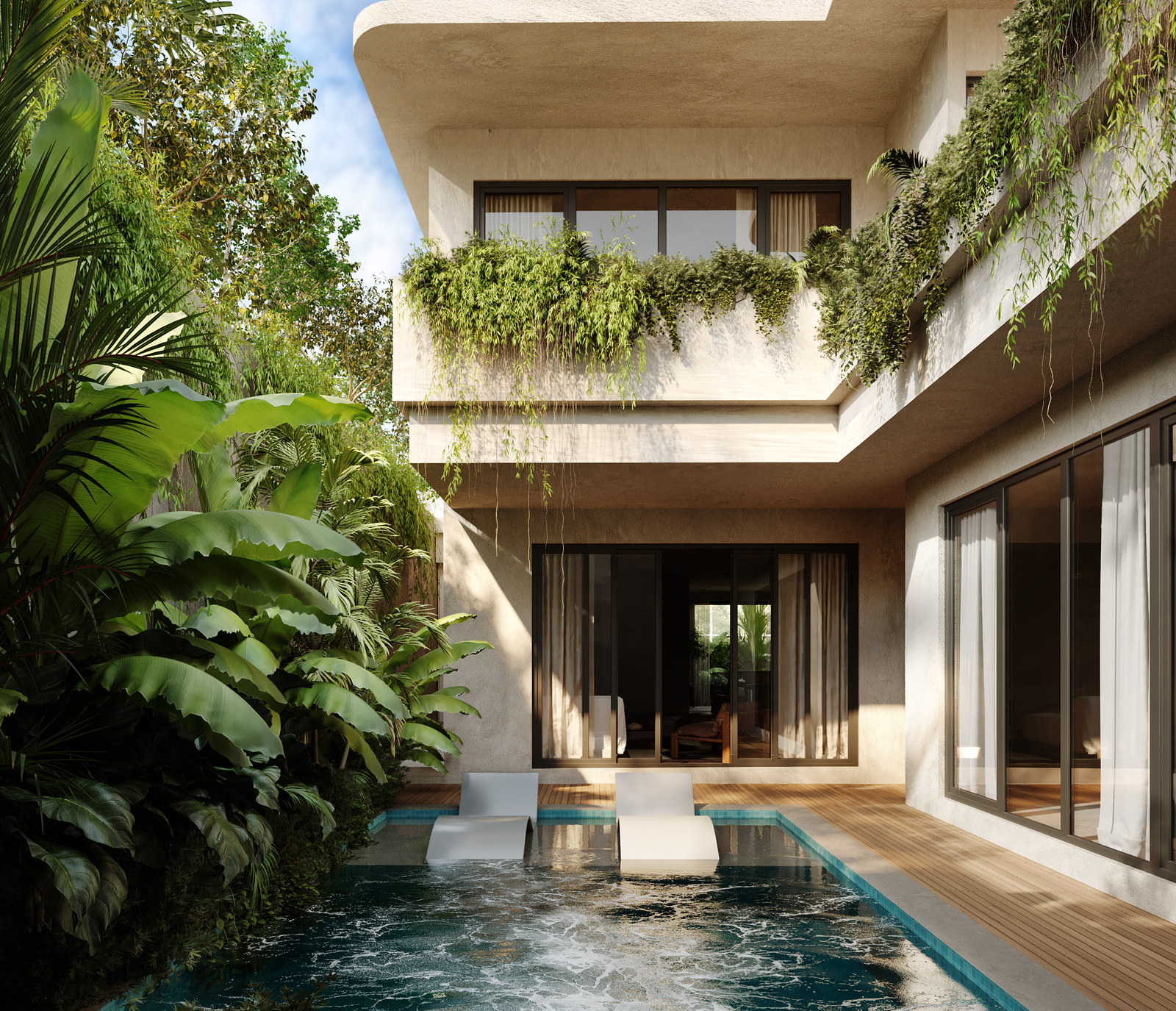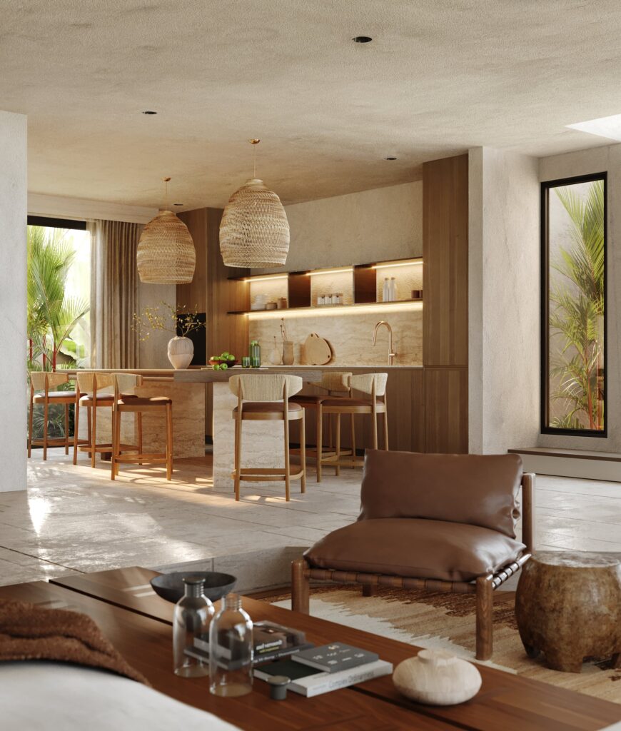 Thoughtfully designed with a focus on clean architectural lines and natural materials: teakwood, natural stone, and marble, it infuses warmth and texture throughout, creating a serene and stylish ambiance. The villa comprises 3 spacious ensuite bedrooms, each featuring walk-in rain showers and a soothing spa-like atmosphere. The open-concept living area flows seamlessly into a sleek, state-of-the-art kitchen, fully equipped with premium appliances—perfectly suited for both intimate living and elegant entertaining.