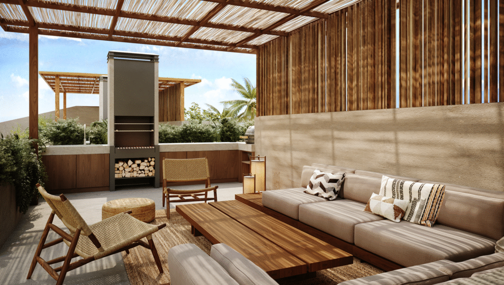 A private rooftop sanctuary crowns the residence, offering panoramic ocean views, a built-in BBQ area, and an ideal setting for sunset gatherings or quiet reflection. Outdoors, the villa opens to a serene pool and expansive sun terrace, encouraging an effortless connection with nature and Bali’s year-round tropical climate.