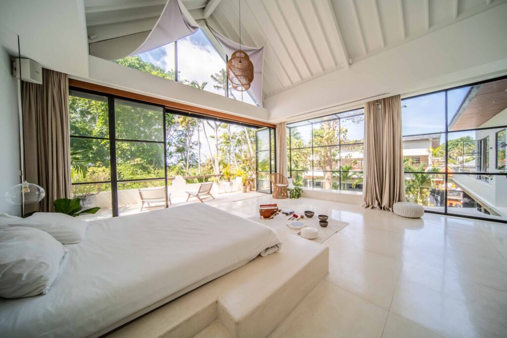 The villa boasts five expansive ensuite bedrooms, each accompanied by spa-inspired bathrooms that exude comfort and privacy. Interiors harmoniously blend contemporary elegance with tropical warmth, while the living area is created with a seamless connection between the lounge, dining, and modern kitchen—an inviting space crafted for both sophistication and ease. Enhancing the residence, a dedicated private wing features a secluded office, a well-appointed mini gym, and an elevated yoga shala overlooking lush greenery, offering the perfect environment to work, recharge, and rejuvenate.