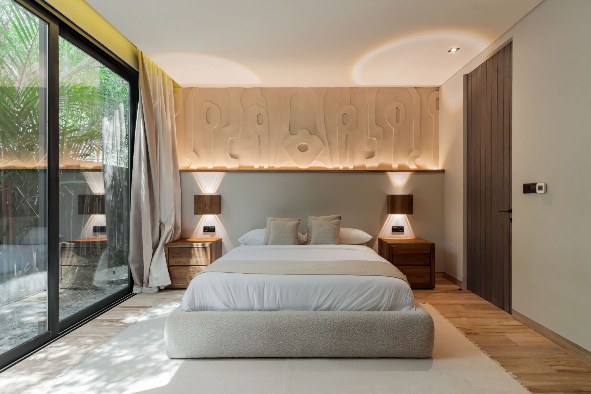 Nestled within one of Umalas’ most prestigious private estates, this striking modern villa embodies a refined sense of contemporary tropical living. Cloaked in earthy tones and crafted from sustainably sourced materials, it harmoniously blends organic warmth with architectural precision. With 24-hour estate security, the residence offers complete peace of mind and privacy, while remaining only minutes away from Bali’s premier lifestyle destinations, renowned international schools, and the sought-after shores of Berawa and Batu Belig.